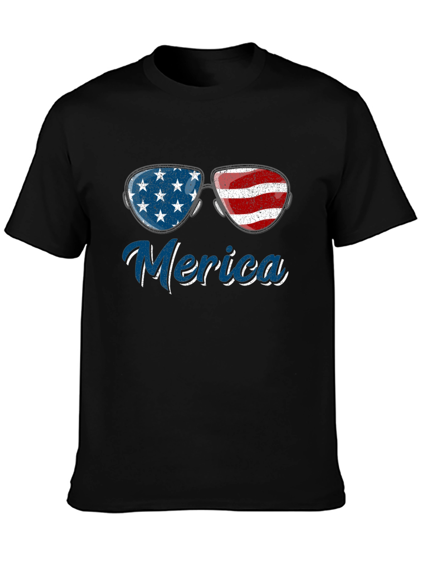 Show off your patriotic spirit with this cool and comfortable Merica t-shirt. Featuring a bold sunglasses graphic filled with the American flag design, this shirt is perfect for celebrating the 4th of July, Memorial Day, or any day you want to display your love for the USA. The design showcases sunglasses with stars on one lens and stripes on the other, adding a fun and unique twist to a classic theme. Made from soft, breathable fabric, it will keep you feeling great all day long. Get yours today and wear your American pride!