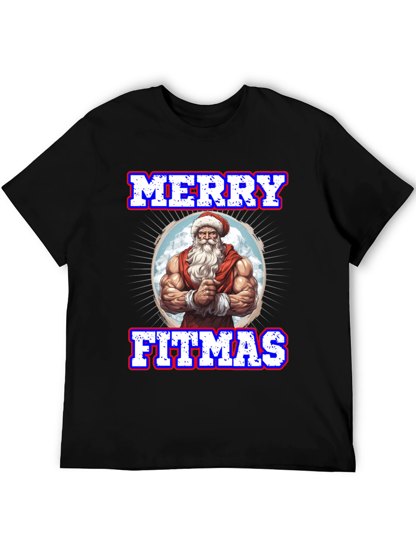 Show off your holiday spirit and love for fitness with this unique graphic t-shirt! Featuring a muscular Santa Claus design, this tee is perfect for gym enthusiasts and anyone who enjoys a humorous twist on traditional Christmas themes. The bold "Merry Fitmas" text adds a playful touch. Made from a comfortable black fabric, this t-shirt is ideal for workouts, casual outings, or festive gatherings. Get ready to spread some holiday cheer and showcase your fit physique in this eye-catching tee!