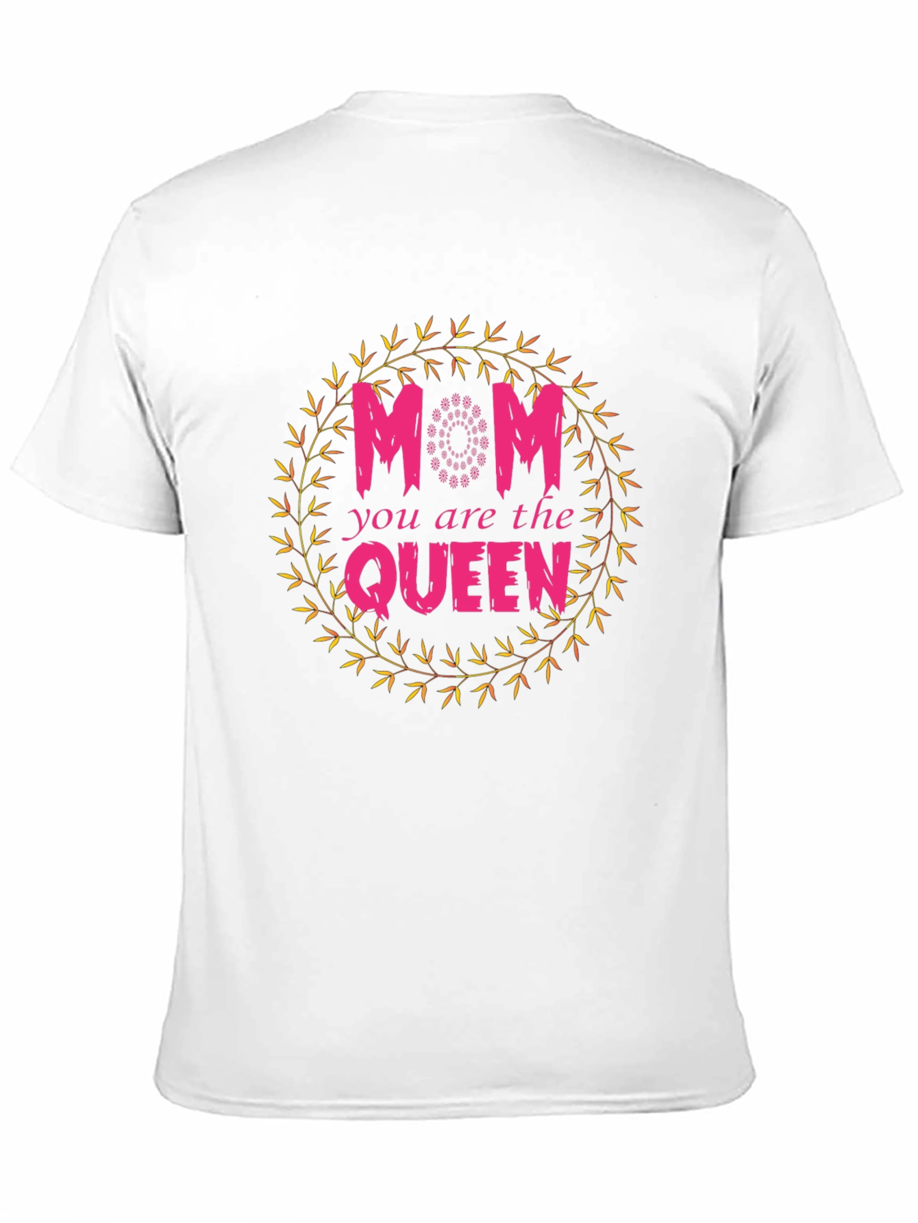 Celebrate the queen of your heart with this stylish black t-shirt. This tee features a vibrant pink "Mom You are the Queen" design encircled by a decorative gold wreath. The bold lettering and eye-catching floral accent make it a fashionable statement piece. Crafted from a soft, comfortable fabric, this t-shirt is perfect for everyday wear or special occasions. Show your appreciation for mom with this unique and trendy gift! Great for mother's day, birthdays, or just to let her know she's the best.