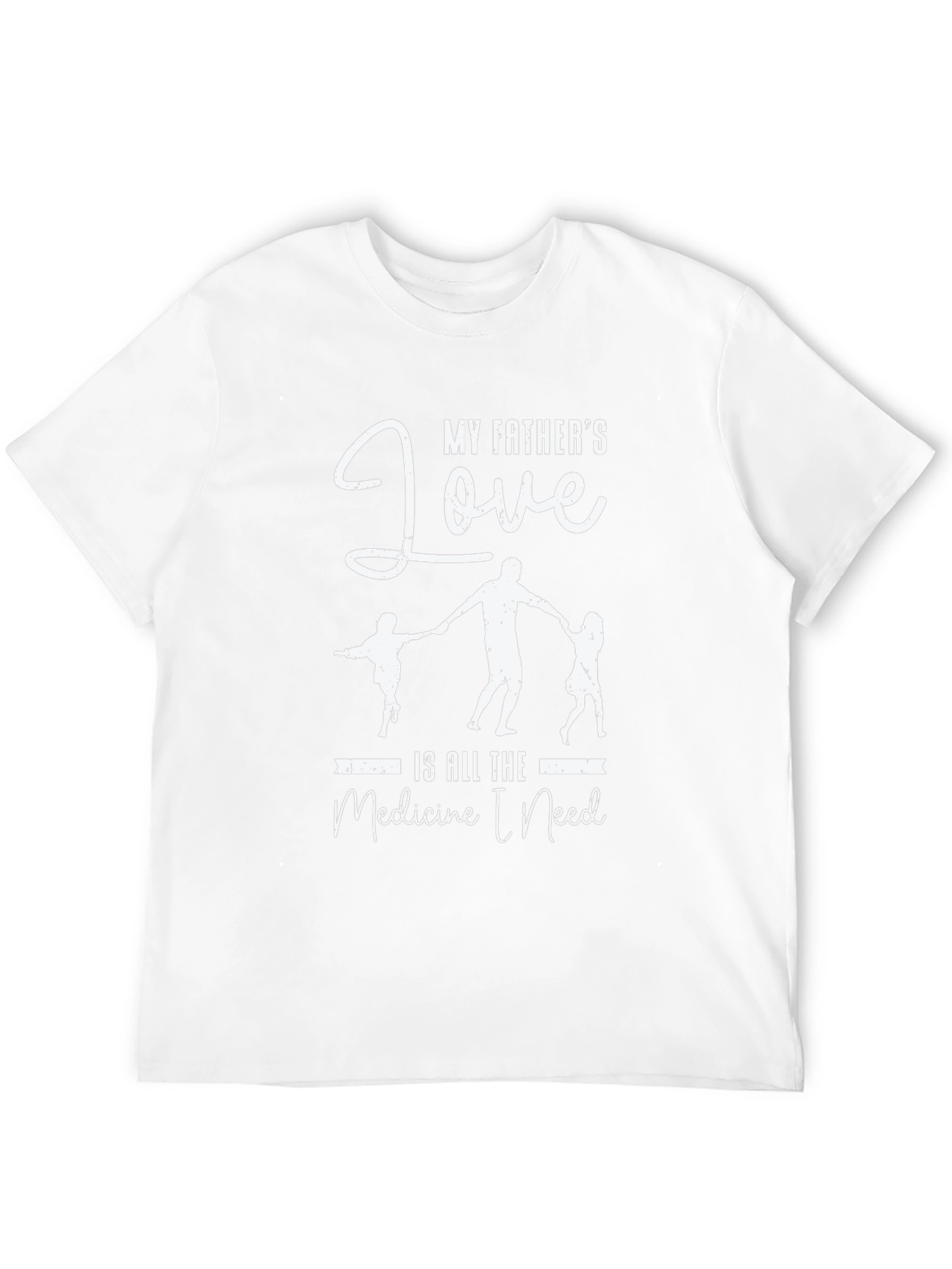 Show your love for dad with this heartwarming black T-shirt! The design features the text "My Father's Love is All the Medicine I Need," complemented by a graphic of a father holding hands with his two children. The design is printed in white, creating a striking contrast against the black fabric. Perfect for everyday wear, family outings, or as a thoughtful gift for Father's Day, this tee is a celebration of the special bond between a father and his children. The comfortable fit and soft material make it a joy to wear, allowing you to express your appreciation for dad in style.