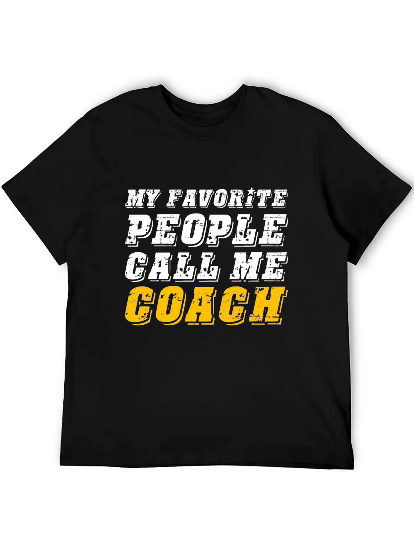 Show your love for coaching with this stylish black t-shirt. The shirt features a bold, eye-catching design with the statement "My Favorite People Call Me COACH" printed across the chest in a distressed white and yellow font. Made from a soft, breathable fabric, this tee is perfect for everyday wear, whether you're on the field, in the gym, or just relaxing with friends. The classic fit ensures a comfortable and flattering look for all body types. Makes a great gift for any coach who wants to show off their passion and pride.
