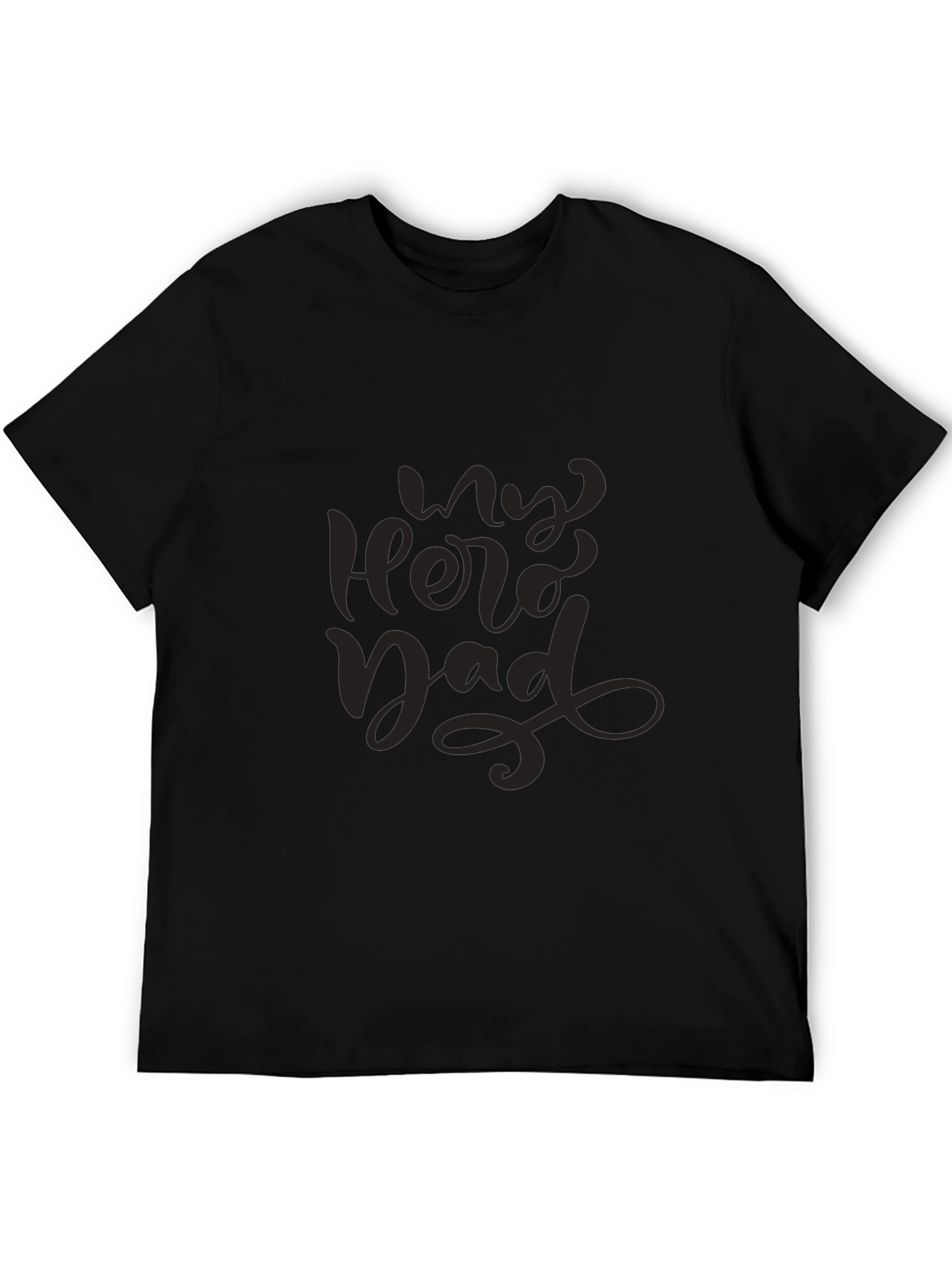 Show your appreciation with this stylish black t-shirt featuring the heartfelt message "My Hero Dad." The shirt boasts a classic fit and is made from a comfortable material. The dark graphic is seamlessly printed onto the fabric for a smooth feel. Perfect for everyday wear, Father's Day, birthdays, or any occasion to celebrate a special dad. This t-shirt will be a cherished addition to any dad's wardrobe. Pair it with jeans or shorts for a casual and cool look that shows off your love and respect.
