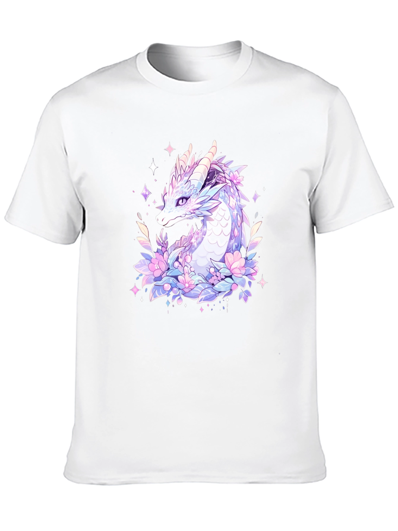 Unleash your inner magic with this captivating graphic tee! Featuring a beautifully illustrated dragon surrounded by pastel flowers and sparkling stars, this shirt is a must-have for fantasy lovers. The design is printed on a comfortable, soft black fabric, perfect for everyday wear or special occasions. Stand out with this unique and eye-catching piece that blends mythical charm with modern style. This tee is ideal for casual outings, cosplay events, or simply expressing your unique personality. Make a statement and embrace the enchantment!