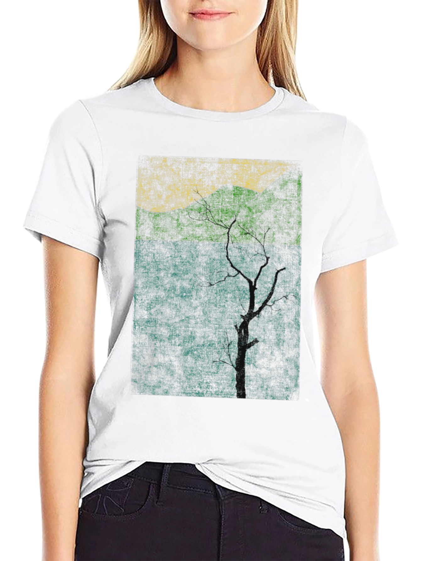 Embrace the outdoors with this unique graphic tee. The black t-shirt features a textured print that showcases a stylized nature scene. A landscape of mountains transitions into a forest-like design with an artistic, faded effect. The shirt is made from a comfortable fabric, perfect for casual wear. This striking design adds a touch of individuality to any outfit. Ideal for nature lovers and those seeking a unique, eye-catching statement piece. Dress it up or down, this versatile tee is a wardrobe essential. Available in various sizes.