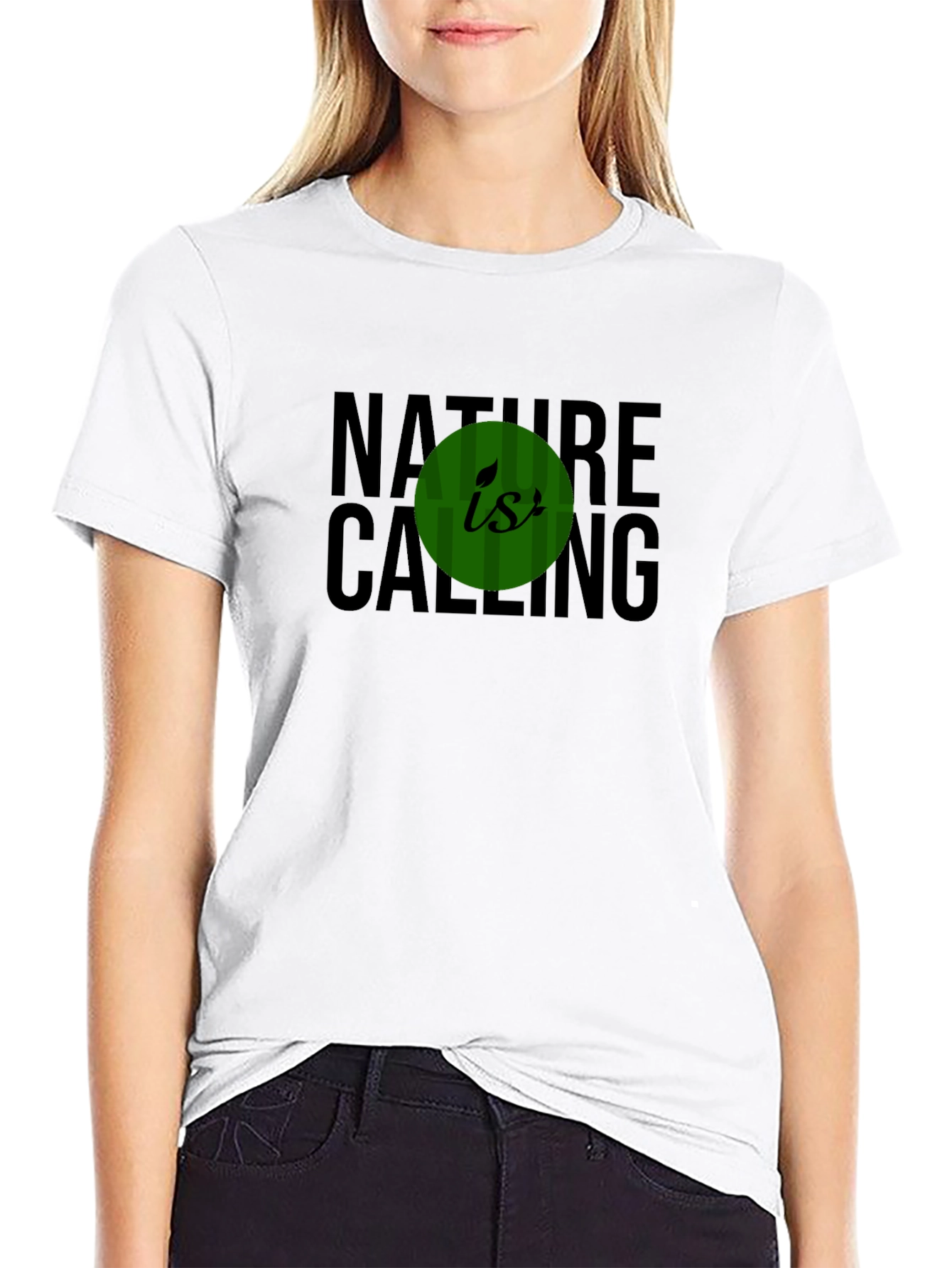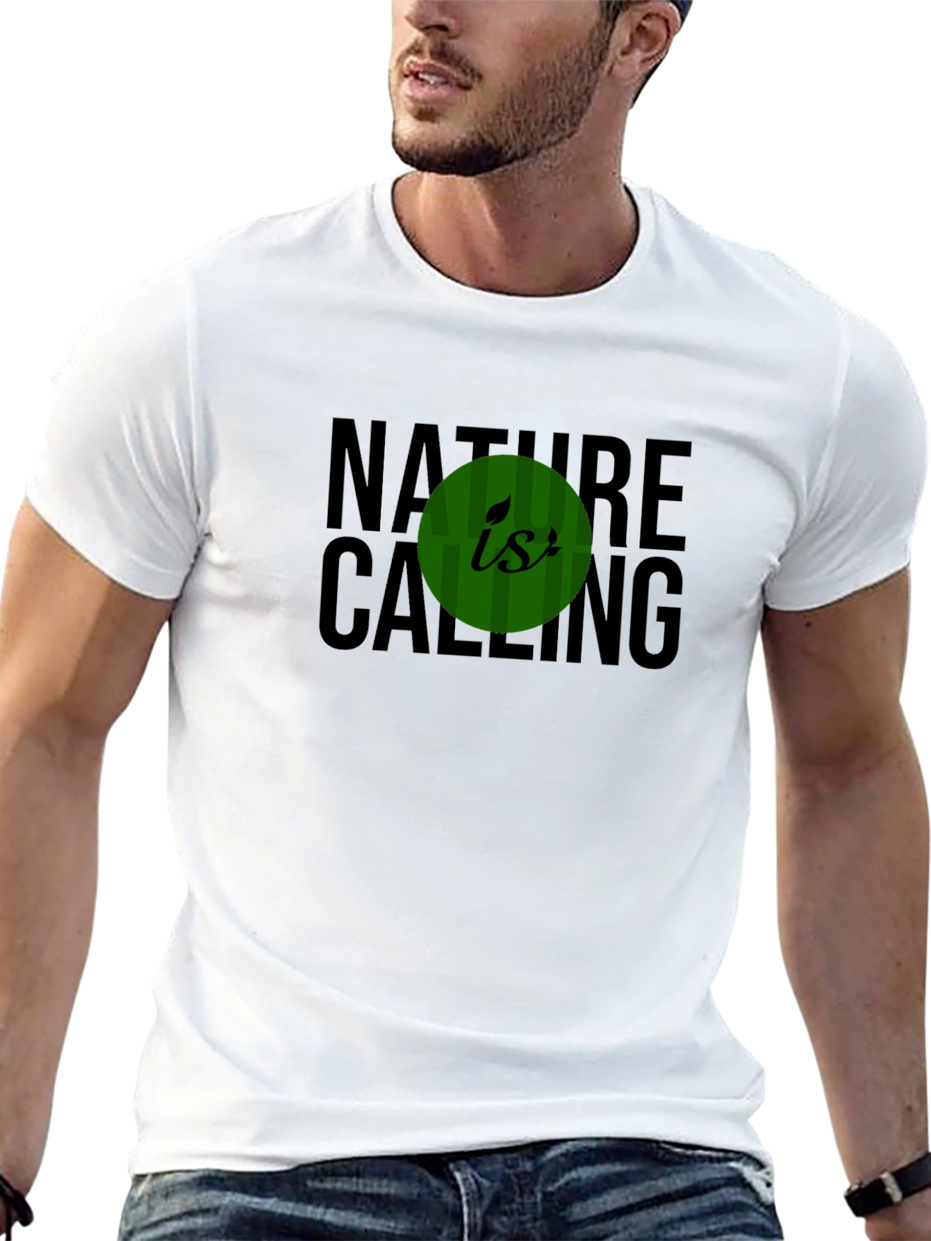 Embrace the call of the wild with this stylish black graphic tee. Featuring the text "Nature is Calling" creatively displayed with a leaf emblem, this shirt is perfect for nature lovers and outdoor enthusiasts. The design is printed on a classic black t-shirt, offering a versatile and timeless look. Made from a comfortable, breathable fabric, this tee is ideal for everyday wear, hiking adventures, or casual outings. Show off your passion for the environment and your adventurous spirit with this unique and eye-catching t-shirt. A must-have for any wardrobe!