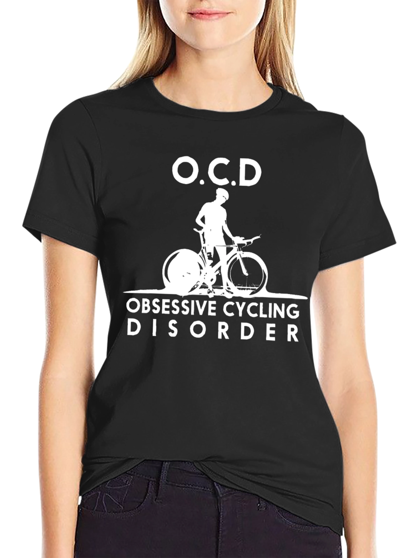 Show your passion for cycling with this unique black graphic tee. Featuring a bold white design with the acronym "OCD" and the phrase "Obsessive Cycling Disorder" alongside a cyclist silhouette, this tee is perfect for avid bikers. Made from comfortable fabric, it's ideal for casual wear, cycling events, or as a gift for the cycling enthusiast in your life. Stand out and express your love for the sport with this eye-catching and humorous t-shirt.
