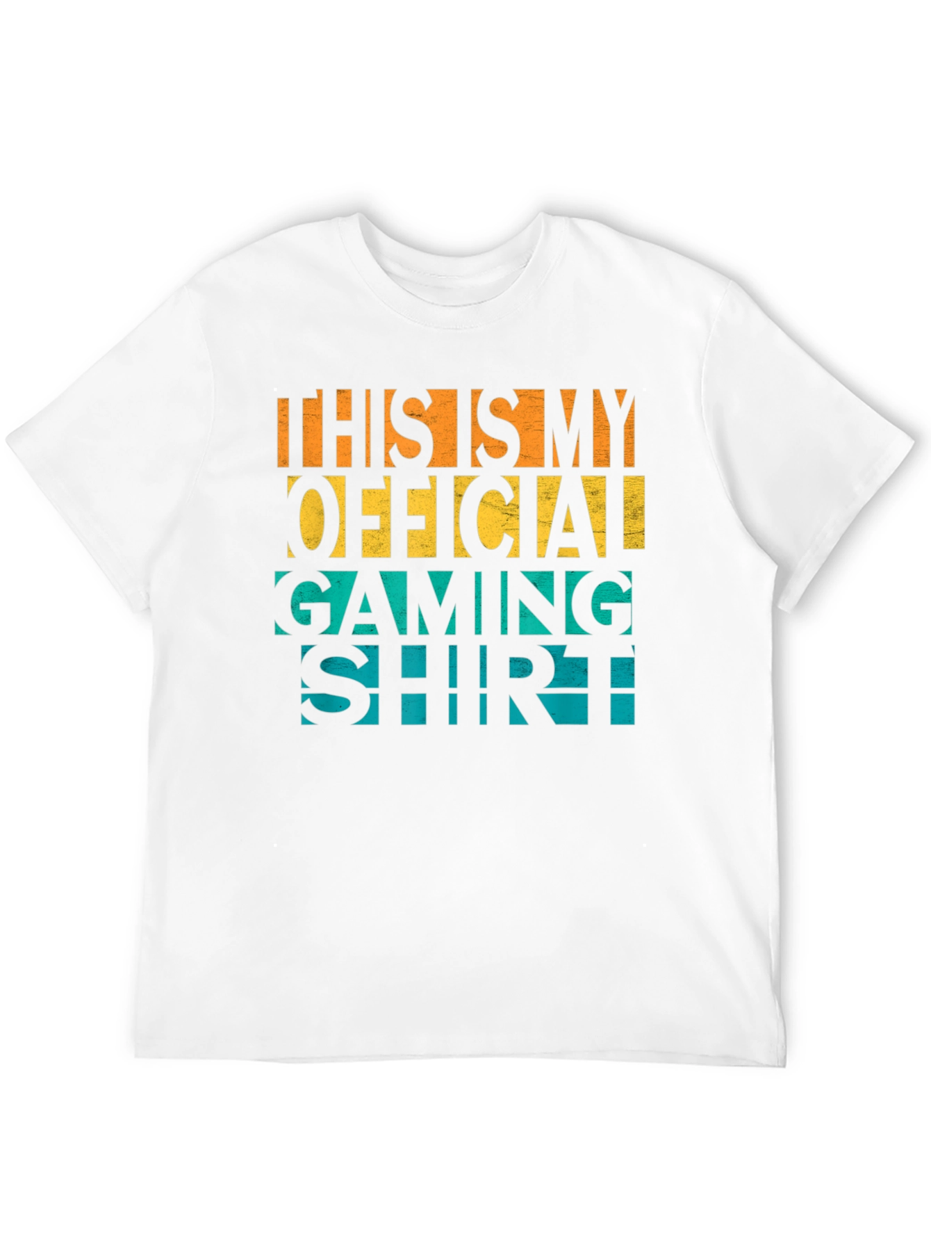 Show off your passion for gaming with this bold and vibrant graphic t-shirt. The design features the words "THIS IS MY OFFICIAL GAMING SHIRT" in eye-catching stacked text, with each word highlighted in a different color: orange, yellow, and teal. This shirt is made from soft, comfortable fabric, perfect for long gaming sessions or casual everyday wear. The classic crew neck and short sleeves ensure a relaxed fit. Stand out from the crowd and let everyone know you're serious about your games with this fun and stylish tee. Whether you're conquering virtual worlds or just hanging out with friends, this shirt is the perfect way to express your love for all things gaming.