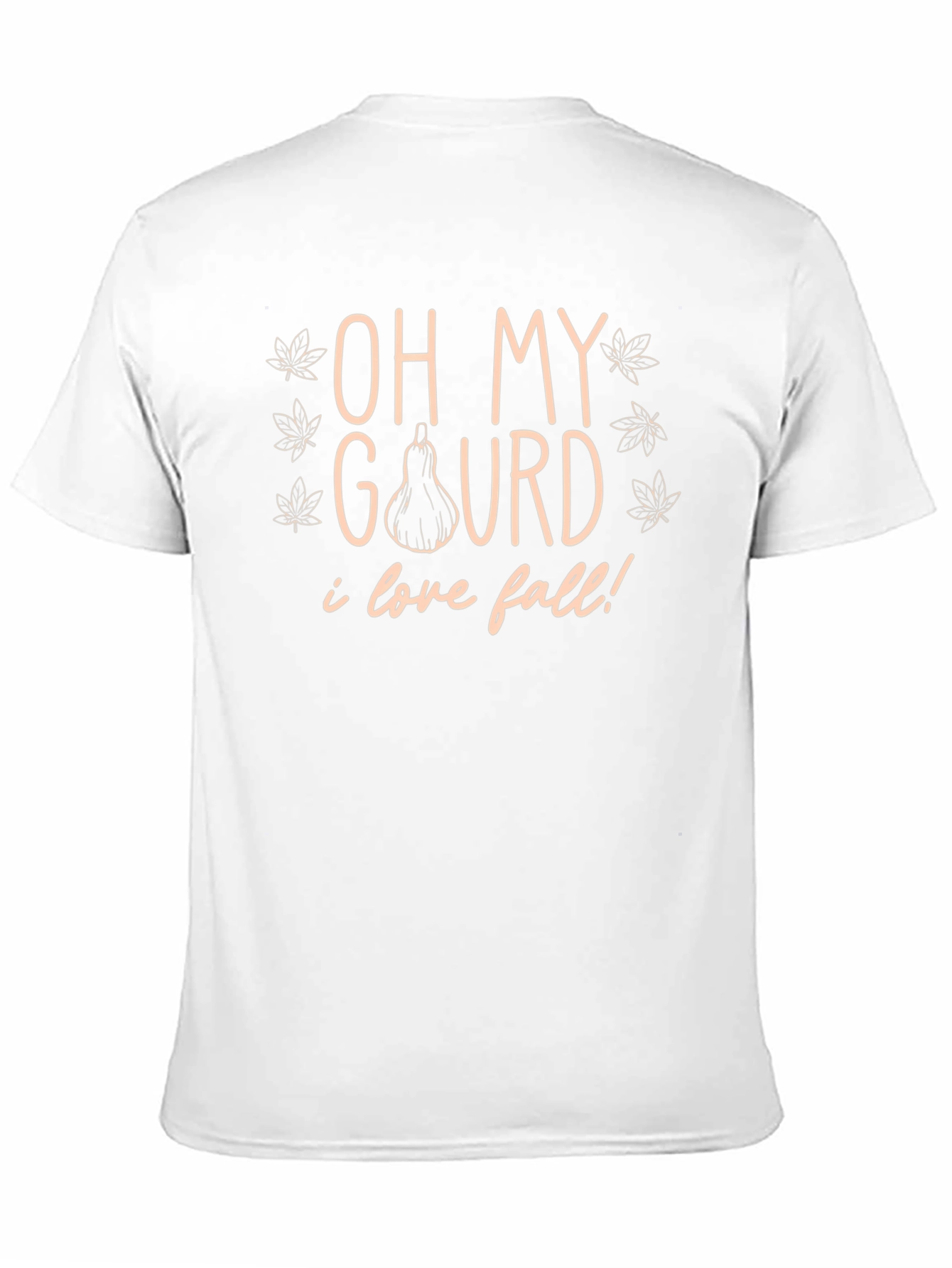 Embrace the autumn season with this stylish black t-shirt. Featuring a playful "Oh My Gourd I Love Fall!" graphic complete with cute gourd and leaf designs, it's the perfect apparel for expressing your love for fall. Made from a soft, comfortable fabric, this tee ensures a great fit and feel for everyday wear. Whether you're heading to a pumpkin patch, enjoying a cozy bonfire, or simply want to showcase your seasonal spirit, this shirt is an excellent choice. It's a fun and fashionable way to celebrate the beauty of autumn!