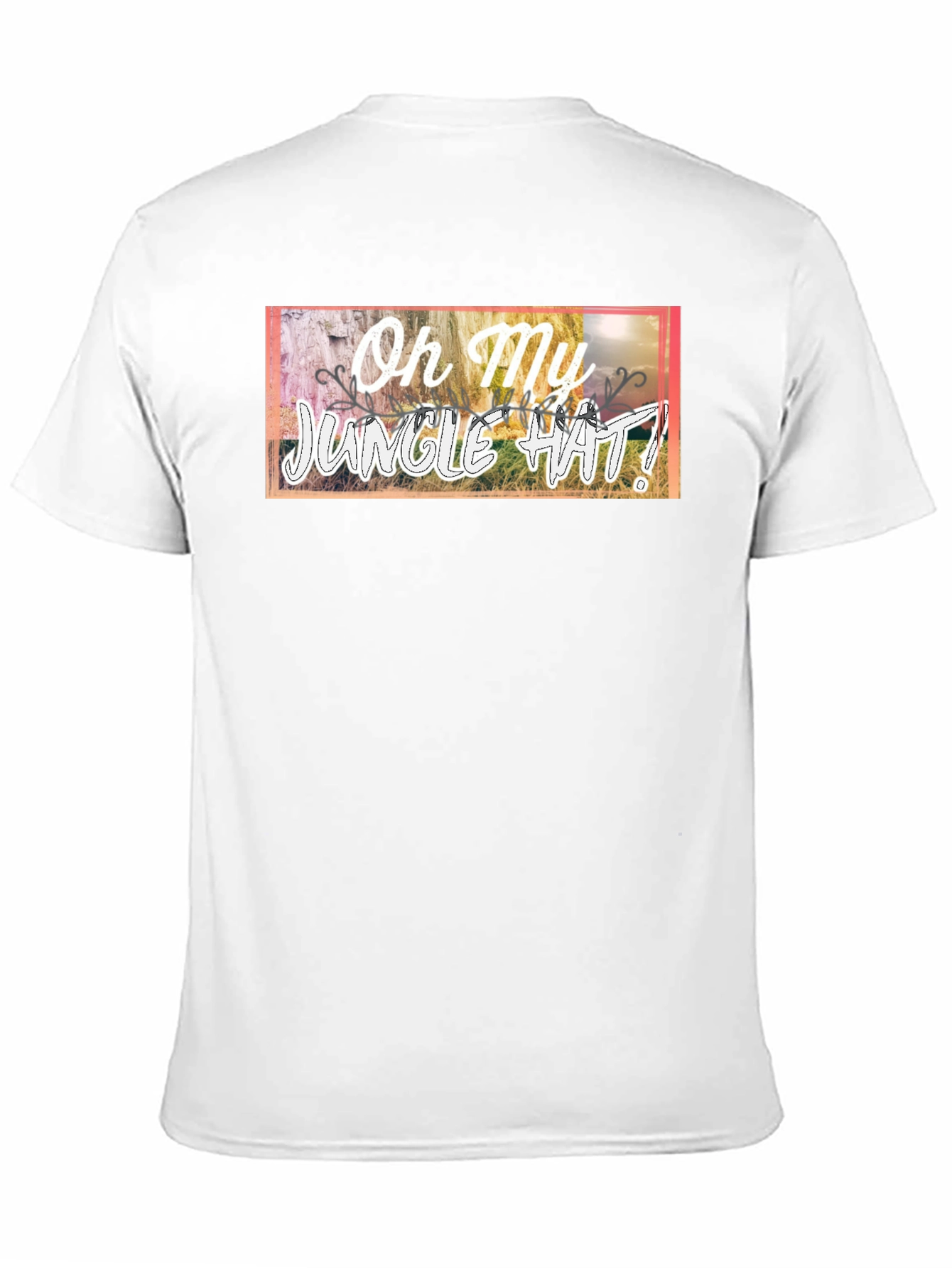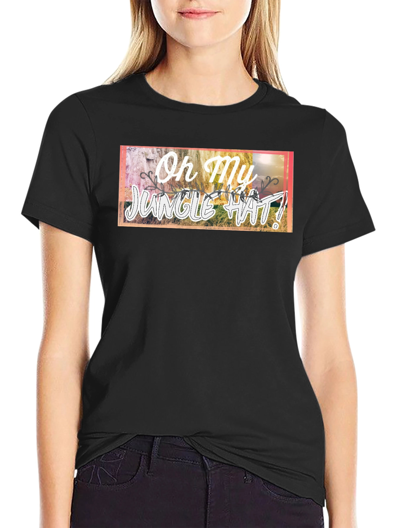 Embrace your wild side with this unique graphic tee! Featuring a vibrant "Oh My Jungle Hat!" design against a lush backdrop, this t-shirt is a statement piece. Crafted from soft, breathable fabric, it offers all-day comfort and style. The print showcases a playful blend of text and nature-inspired elements, making it a perfect conversation starter. Ideal for casual outings, concerts, or expressing your adventurous spirit. Step up your wardrobe with this eye-catching tee that combines comfort and bold design.
