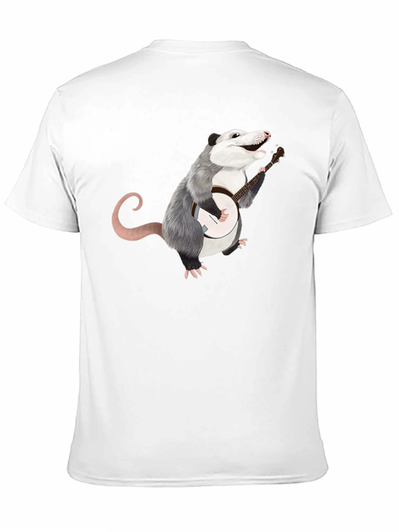 Show off your love for music and wildlife with this unique black t-shirt. The shirt features a playful graphic of an opossum strumming a banjo, adding a touch of whimsy to your wardrobe. Made from comfortable, breathable fabric, this tee is perfect for everyday wear. The design is printed with high-quality inks, ensuring it remains vibrant and eye-catching wash after wash. Great for casual outings, band practice, or just lounging around, this t-shirt is sure to be a conversation starter. Get yours today and let your personality shine!