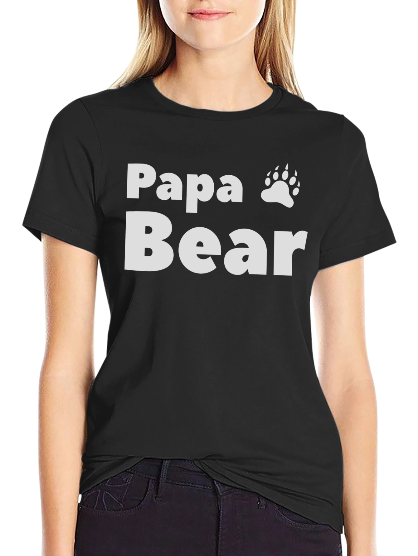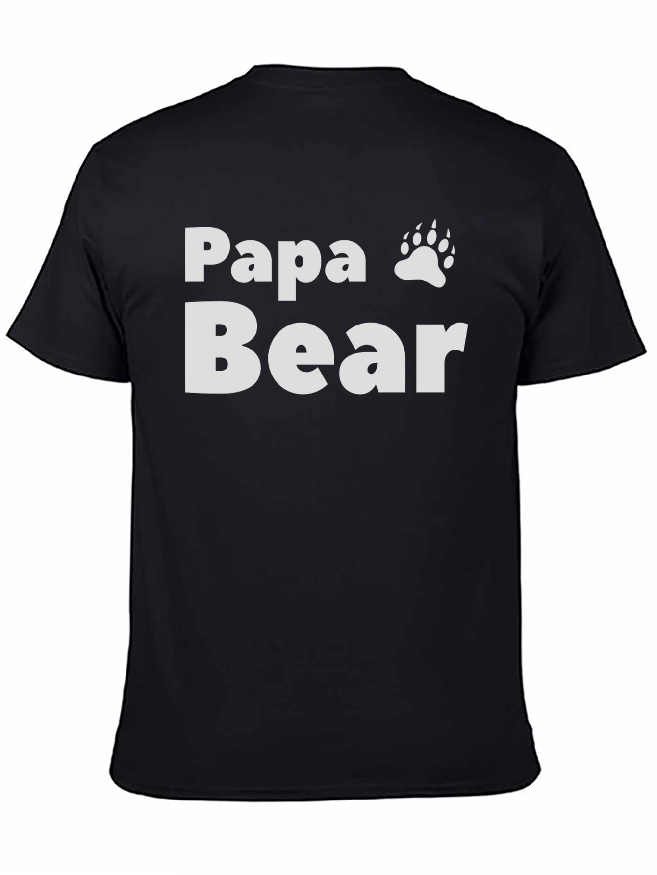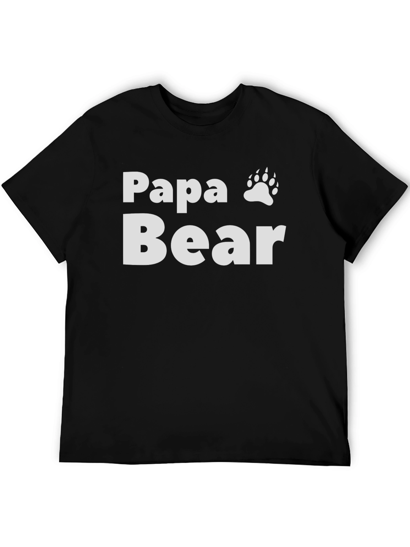 Show off your paternal pride with this classic "Papa Bear" graphic t-shirt. This short-sleeved tee features a bold white "Papa Bear" design, complete with a paw print accent. The shirt appears to be crafted from a soft and comfortable black cotton blend, perfect for everyday wear. Its simple yet stylish design makes it suitable for casual outings, family gatherings, or relaxed weekends at home. Makes a great gift for fathers! Comfortable fit for all-day wear, show your love for family with this amazing tee!