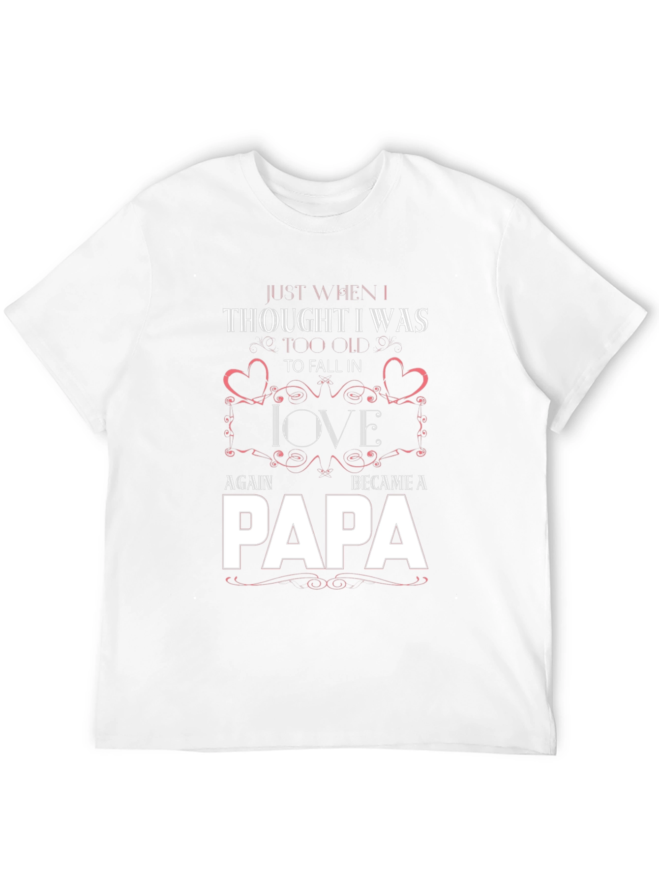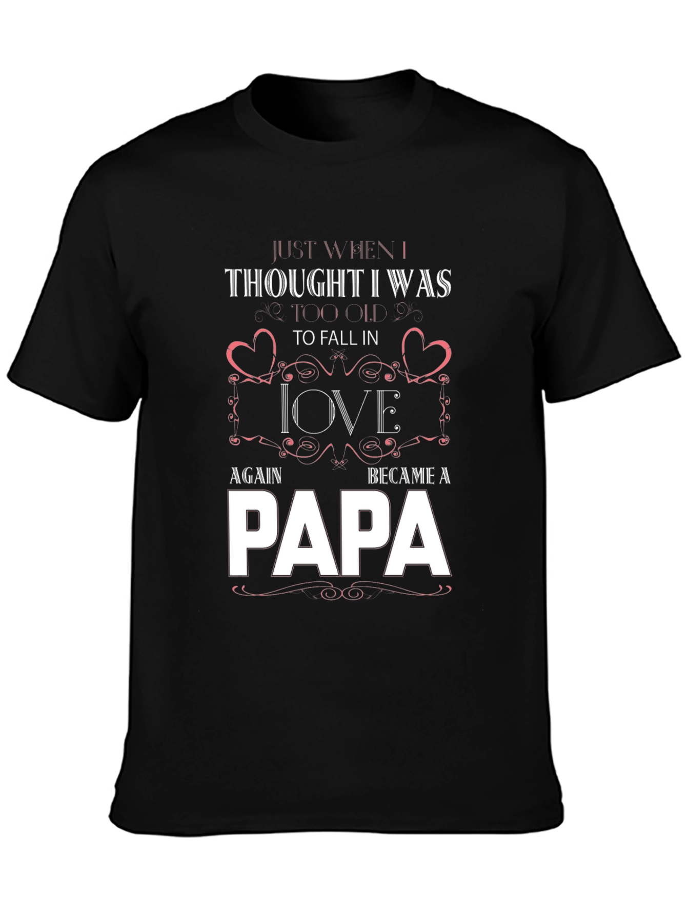 Show your love for being a Papa with this stylish black T-shirt. The shirt features a unique graphic print that reads "Just When I Thought I Was Too Old To Fall In Love Again I Became A Papa". This comfortable tee is perfect for everyday wear, family gatherings, or as a thoughtful gift for Father's Day. Made from soft, breathable fabric, this T-shirt offers both comfort and style. Ideal for showing off your pride as a Papa! Don't miss out, grab yours today!
