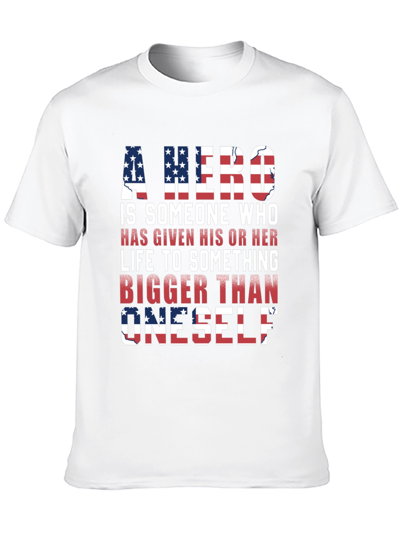 Show your patriotism with this bold black t-shirt featuring an American flag-inspired design. The graphic displays the powerful message "A HERO IS SOMEONE WHO HAS GIVEN HIS OR HER LIFE TO SOMETHING BIGGER THAN ONESELF," making it perfect for honoring veterans, first responders, and anyone who values selfless service. Constructed from a comfortable and durable fabric, this tee is ideal for everyday wear, patriotic events, or casual outings. Express your values with this meaningful and stylish piece. A great gift for yourself or a loved one who appreciates freedom and courage.