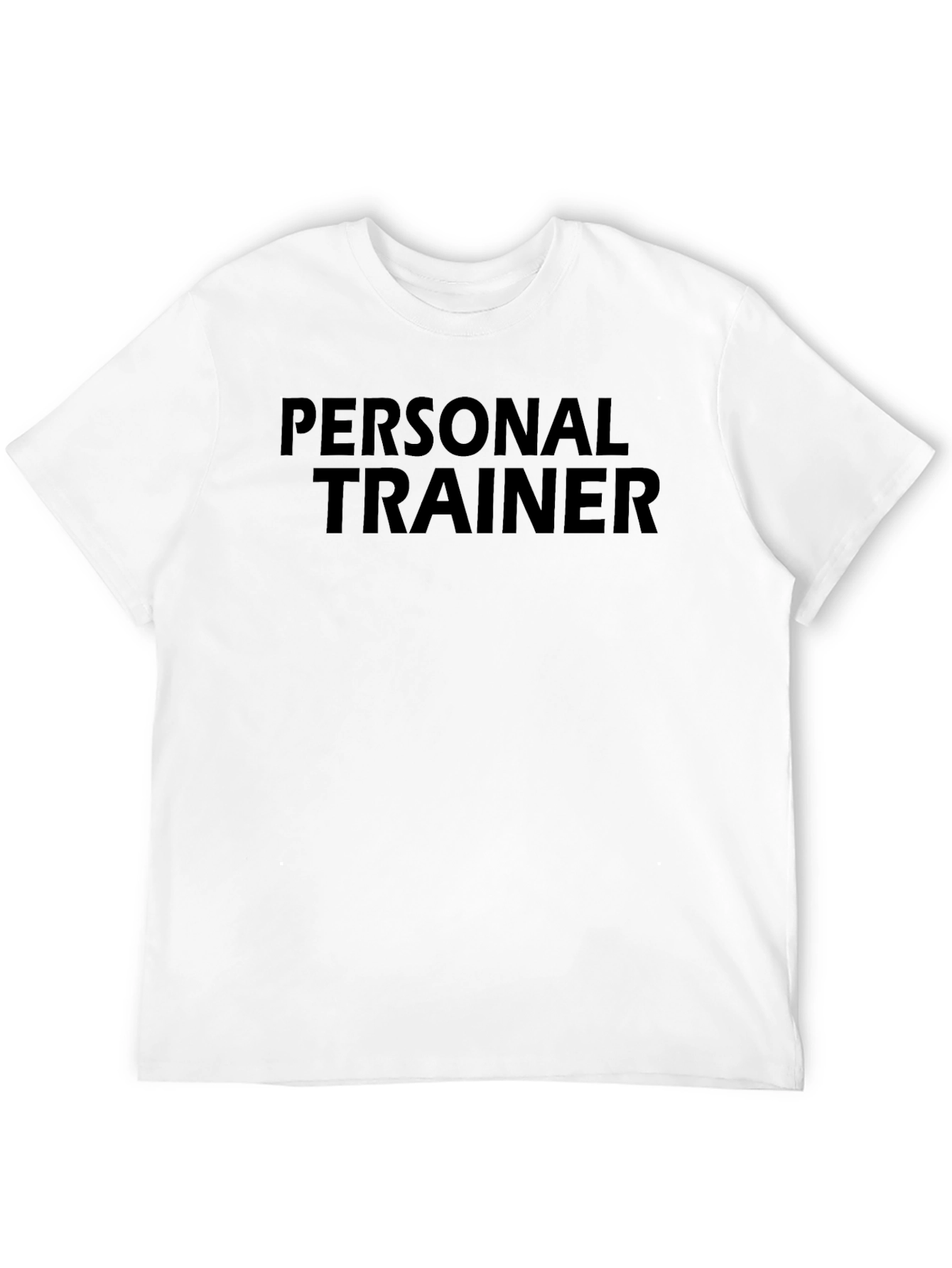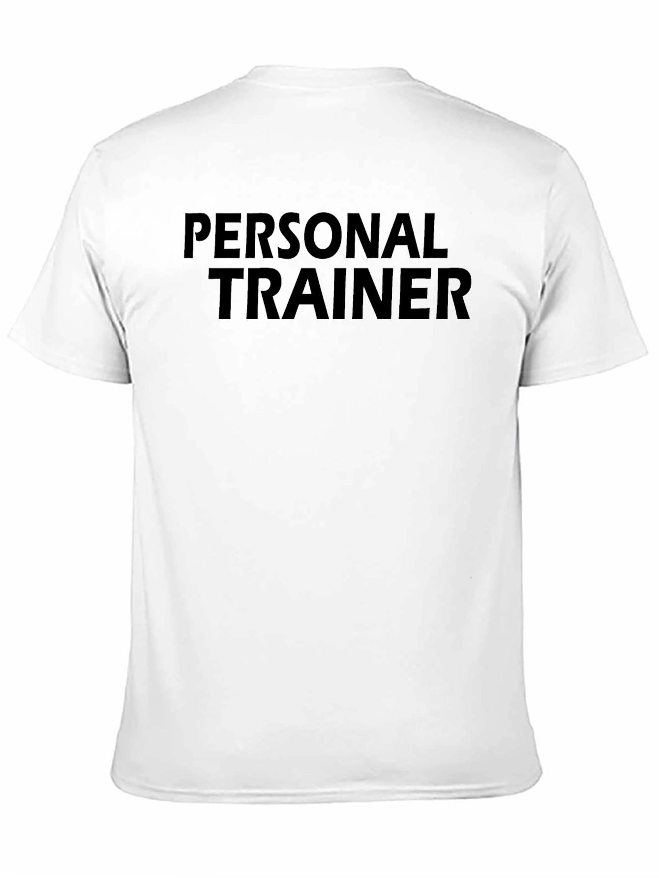 Show off your dedication to fitness with this sleek black t-shirt. Featuring the text "PERSONAL TRAINER", this shirt is perfect for gym sessions, workouts, or casual wear. The bold text is prominently displayed, making a statement about your profession or passion. Made from a comfortable material, this shirt offers both style and functionality. Whether you're training clients or hitting the weights yourself, this t-shirt is a great addition to your wardrobe. Get yours today and let everyone know you're a personal trainer!