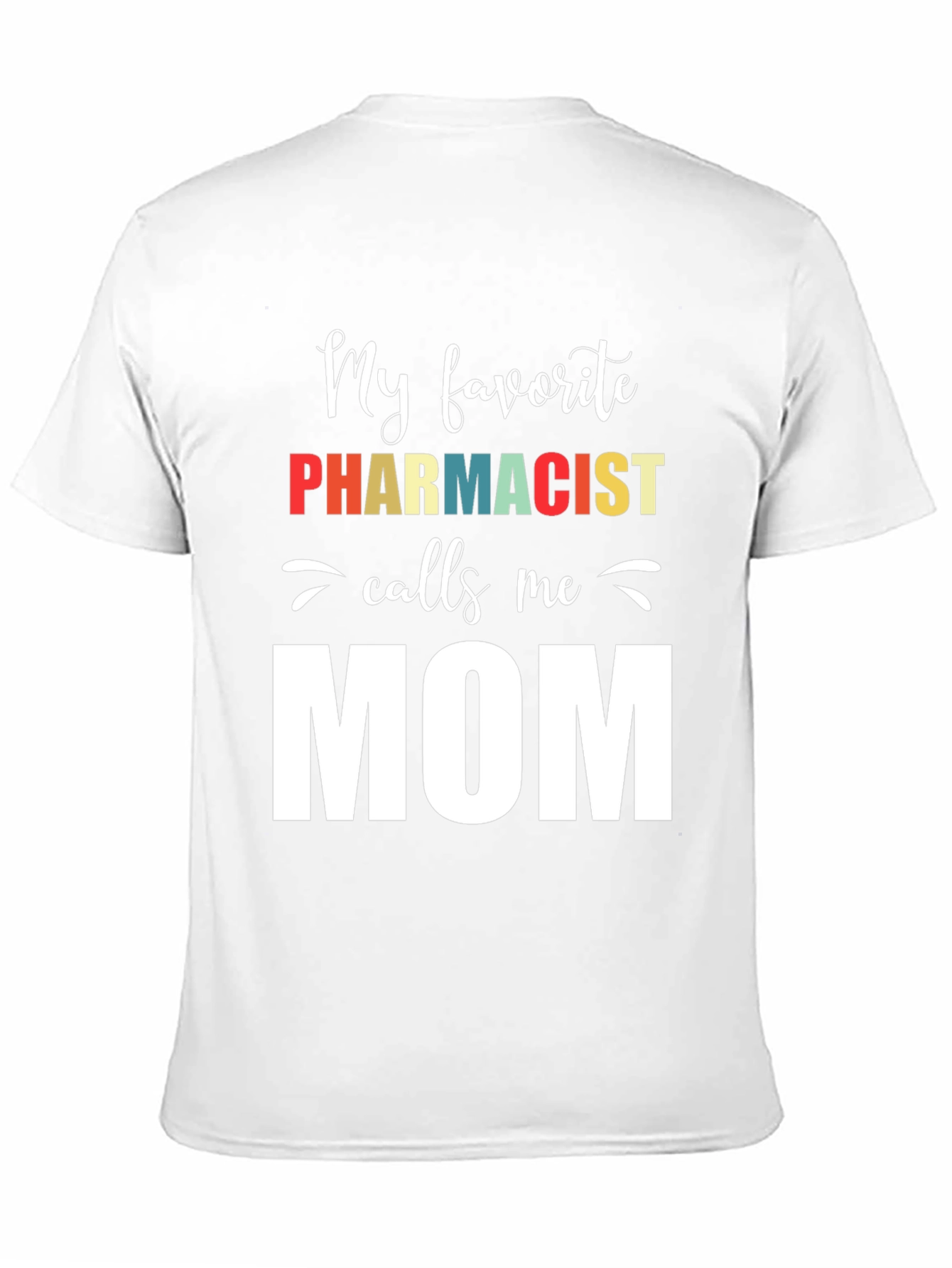 Show your love for the pharmacist in your life with this charming black t-shirt! The design features a playful script that reads 'My favorite PHARMACIST calls me MOM' in a variety of vibrant colors. Made from soft and comfortable fabric, this tee is perfect for casual wear. The striking graphic adds a personal touch, making it an ideal gift for a mother who is proud of her pharmacist child. Wear it to family gatherings, work events, or just around town to showcase your affection. A stylish and heartfelt way to celebrate the special bond!