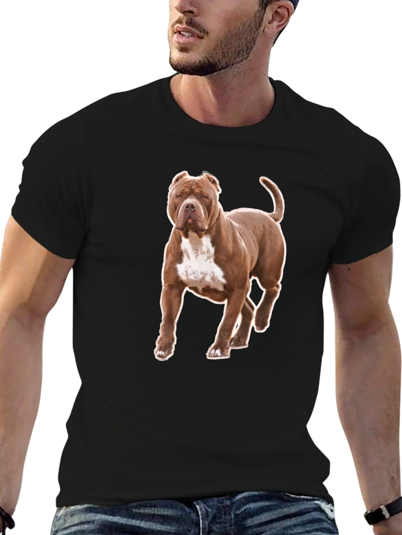 Show your love for pitbulls with this stylish black cotton t-shirt! Featuring a vivid, high-quality print of a brown and white pitbull, this tee is perfect for dog lovers and casual wear. The classic crew neck design and soft, breathable fabric ensure all-day comfort. Pair it with jeans or shorts for a relaxed, everyday look. This eye-catching t-shirt is a great conversation starter and a must-have for any pitbull enthusiast's wardrobe. Get yours today and proudly display your passion for these amazing dogs!