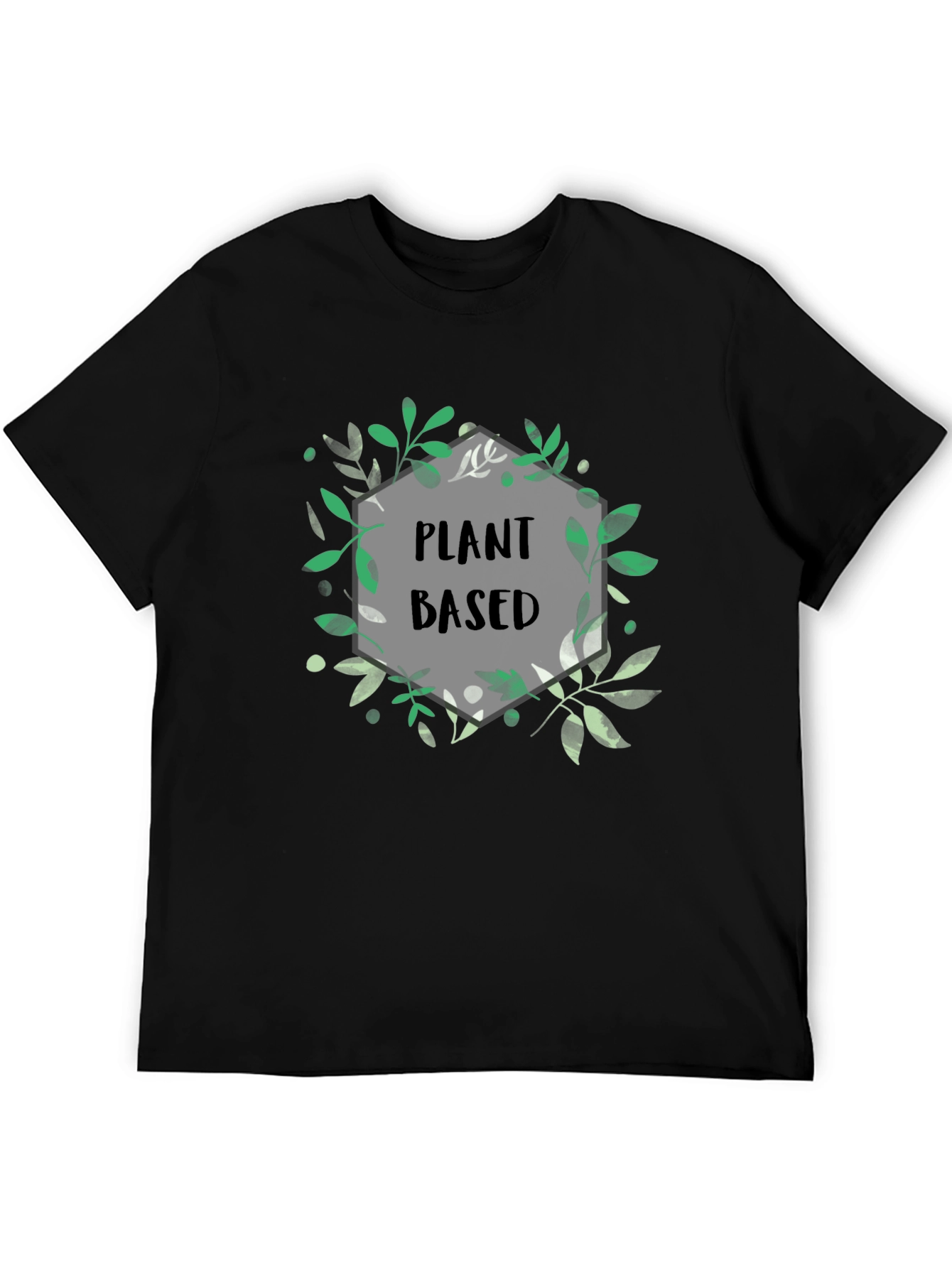 Show off your love for plant-based living with this stylish black T-shirt. Featuring a unique hexagon design surrounded by lush green leaves, the words "PLANT BASED" are prominently displayed. Made from what appears to be a soft and comfortable fabric, this tee is perfect for everyday wear. Great for casual outings, vegan meetups, or simply spreading awareness. The versatile design pairs well with jeans, shorts, or skirts. A great addition to any eco-conscious wardrobe!