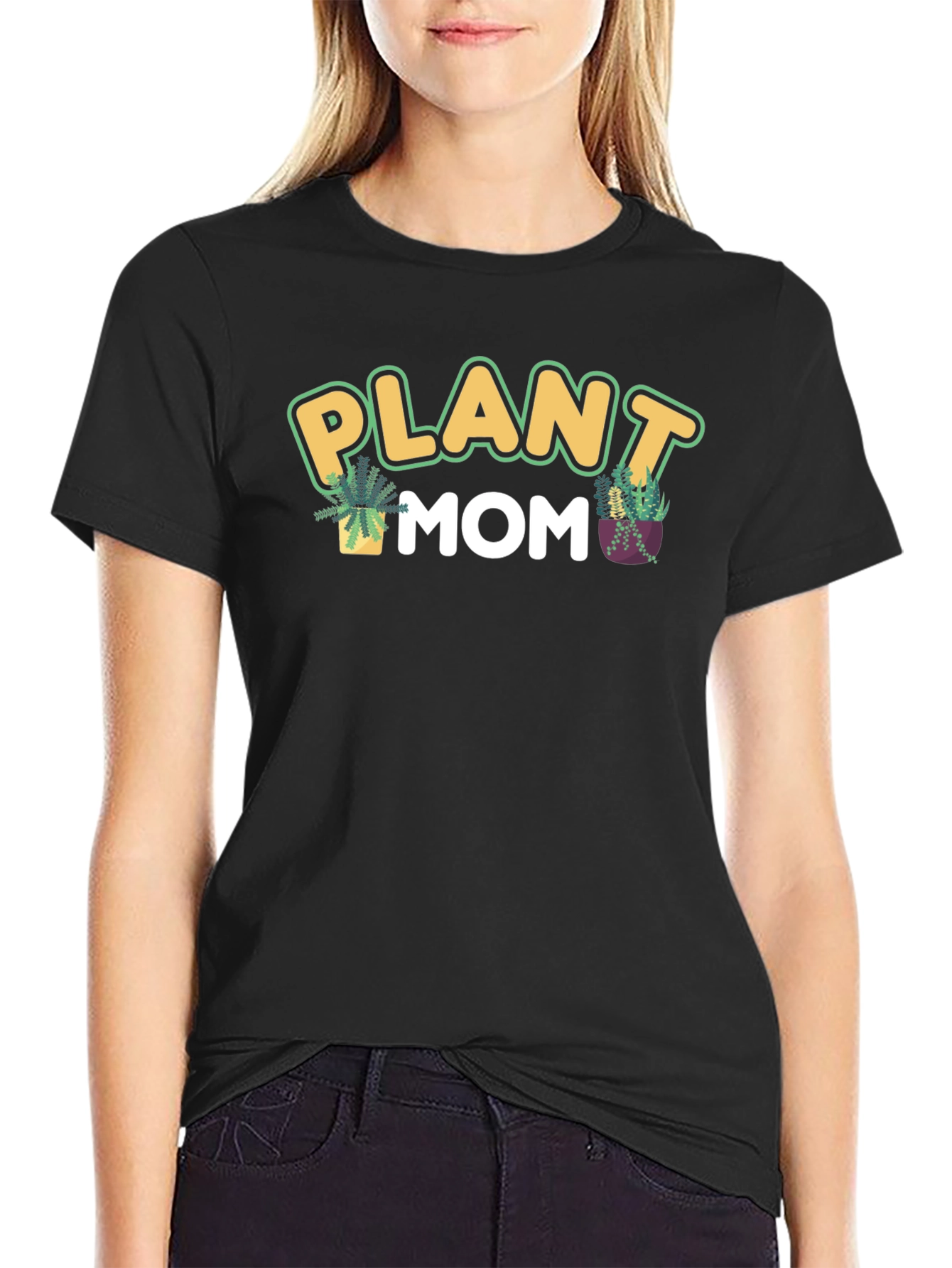 Show off your love for plants with this stylish black 'Plant Mom' t-shirt. This trendy tee features a fun, eye-catching design with a cartoon-style font and adorable potted plant graphics. Made from a comfortable material, it's perfect for everyday wear. Whether you're tending to your indoor jungle or out running errands, this shirt lets everyone know you're a proud plant parent. Great as a gift for the plant lover in your life or as a treat for yourself. Get yours today and let your passion for plants bloom!