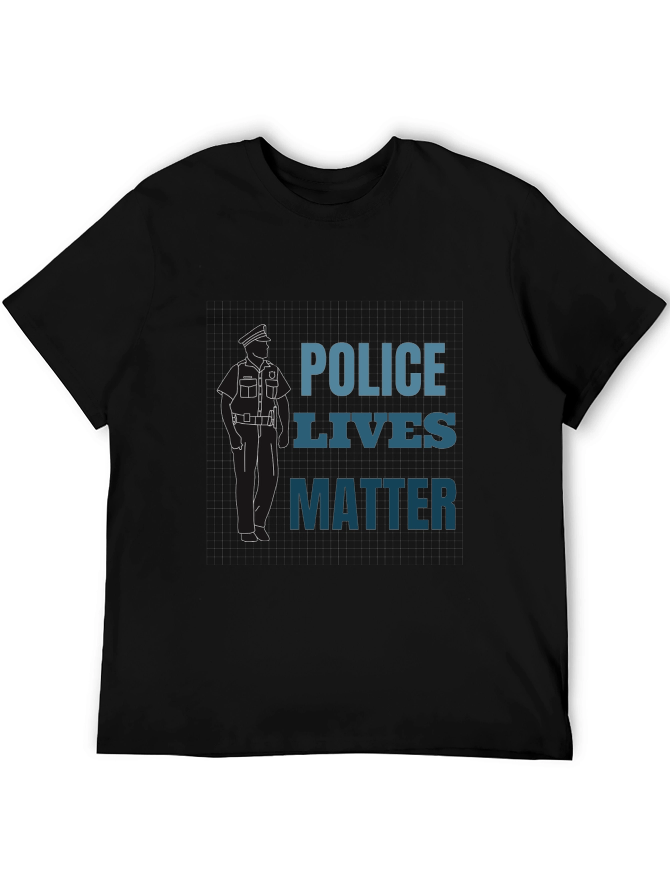 Show your support with this bold black t-shirt featuring a "Police Lives Matter" graphic. The design includes a stylized outline of a police officer. Made from comfortable materials, this tee is perfect for everyday wear, rallies, or showing appreciation for law enforcement. This shirt is a statement piece that combines comfort and a powerful message. Great for casual outings or community events.