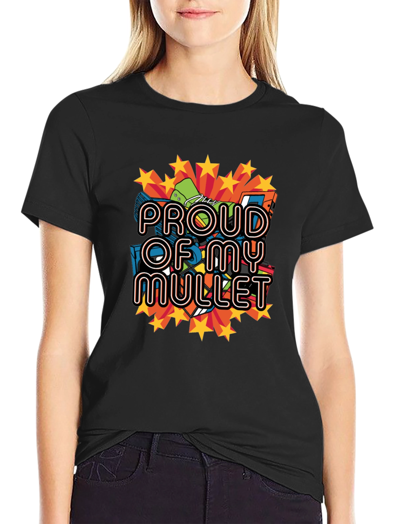 Show off your love for the classic mullet with this bold graphic tee! Featuring a retro-inspired design with vibrant colors and eye-catching stars, this shirt proudly proclaims "Proud of My Mullet." Made from a comfortable, soft fabric, this tee is perfect for casual wear, parties, or showing off your unique style. The design is printed with high-quality inks for a long-lasting, vibrant finish. Express your individuality and rock your mullet with pride!