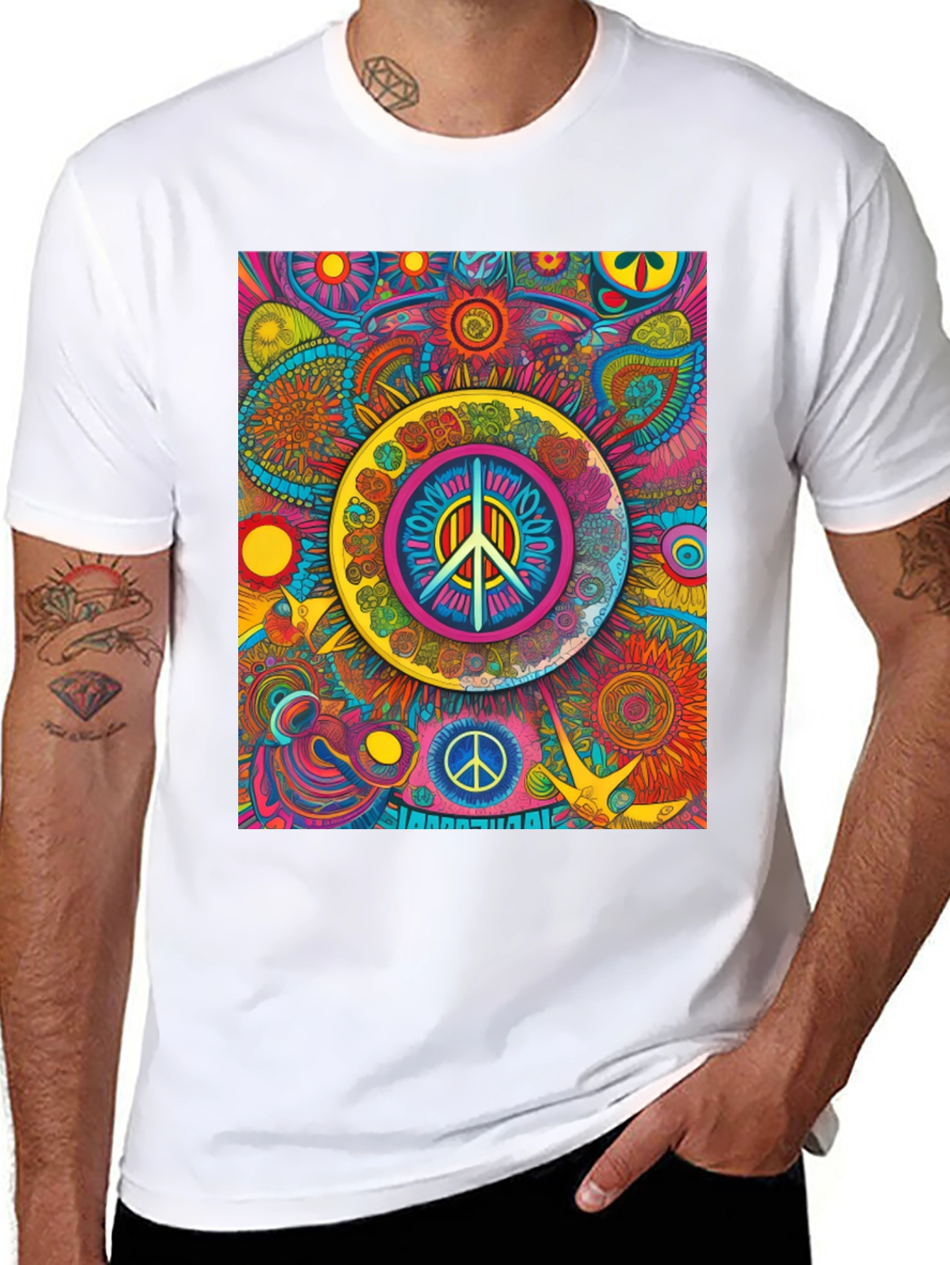 Psychedelic Peace Sign Graphic Tee - Vibrant Design