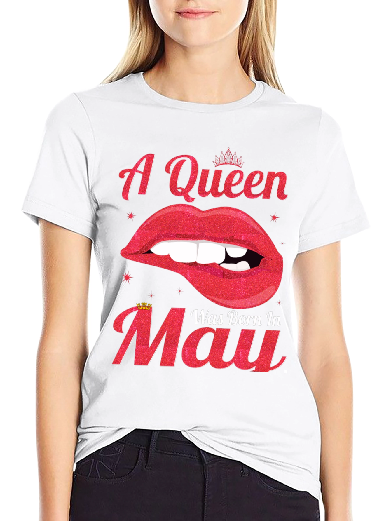 Celebrate your birthday month with this unique “A Queen Was Born In May” t-shirt. The design features bold, red lettering with glitter accents, a crown and a pair of red glittery lips that add a playful touch. Made from a comfortable material, this tee is perfect for casual wear, birthday parties, or as a special gift for a May-born queen. Show off your birth month pride in style! Makes a thoughtful and fun birthday gift for women born in May.