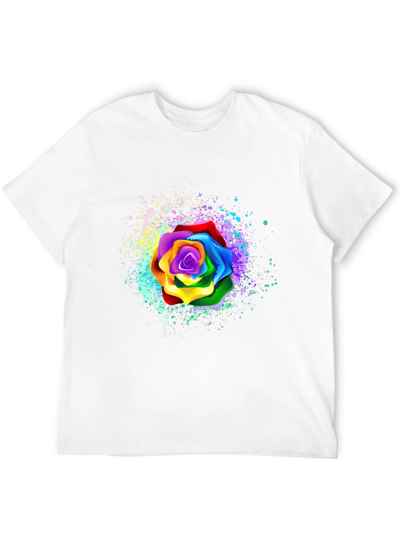 Rainbow Rose Splatter Graphic Tee - Unique Design