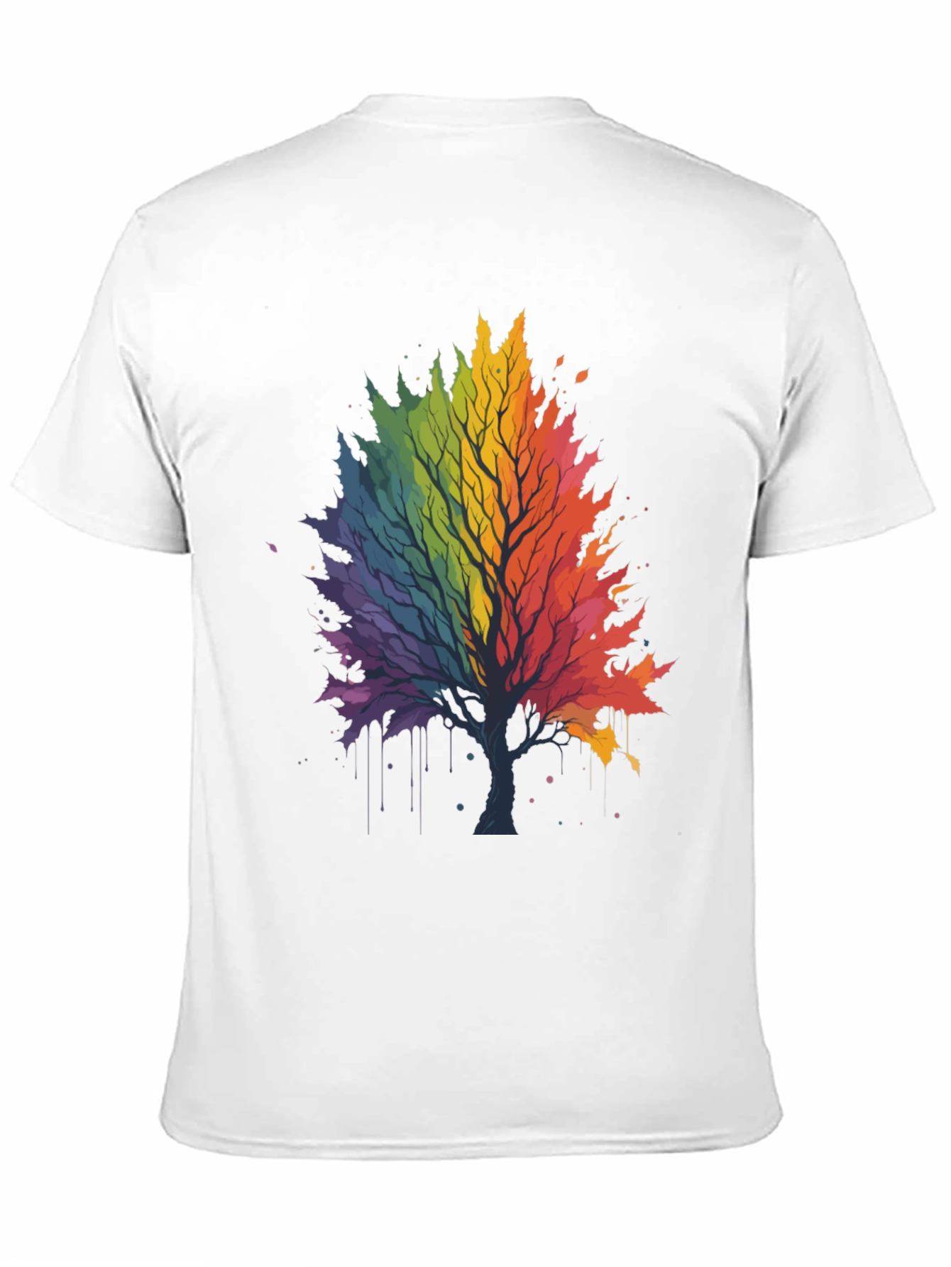 Show your colors with this eye-catching black t-shirt featuring a vibrant rainbow tree graphic. The design showcases a tree with leaves transitioning through the colors of the rainbow, creating a visually stunning and unique look. Made from comfortable, breathable fabric, this tee is perfect for everyday wear. Whether you're making a statement, celebrating diversity, or simply love colorful designs, this t-shirt is a must-have addition to your wardrobe. Pair it with jeans or shorts for a casual yet stylish outfit.