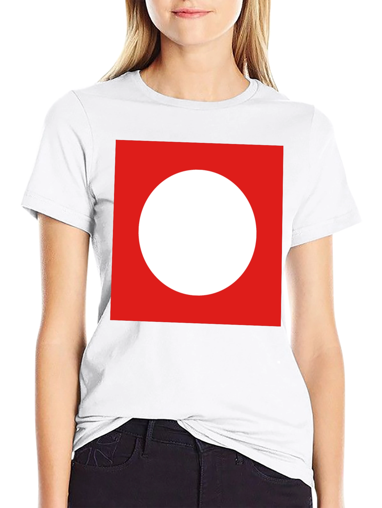 Make a bold statement with this eye-catching graphic tee. The shirt features a striking red square with a crisp white circle at the center, creating a modern and minimalist design. Made from comfortable material, this tee is perfect for everyday wear and casual outings. The classic fit ensures a relaxed and flattering look for all body types. Dress it up or down - this versatile t-shirt pairs effortlessly with jeans, shorts, or your favorite jacket. Stand out from the crowd and showcase your unique style with this must-have wardrobe staple. Available in a range of sizes.