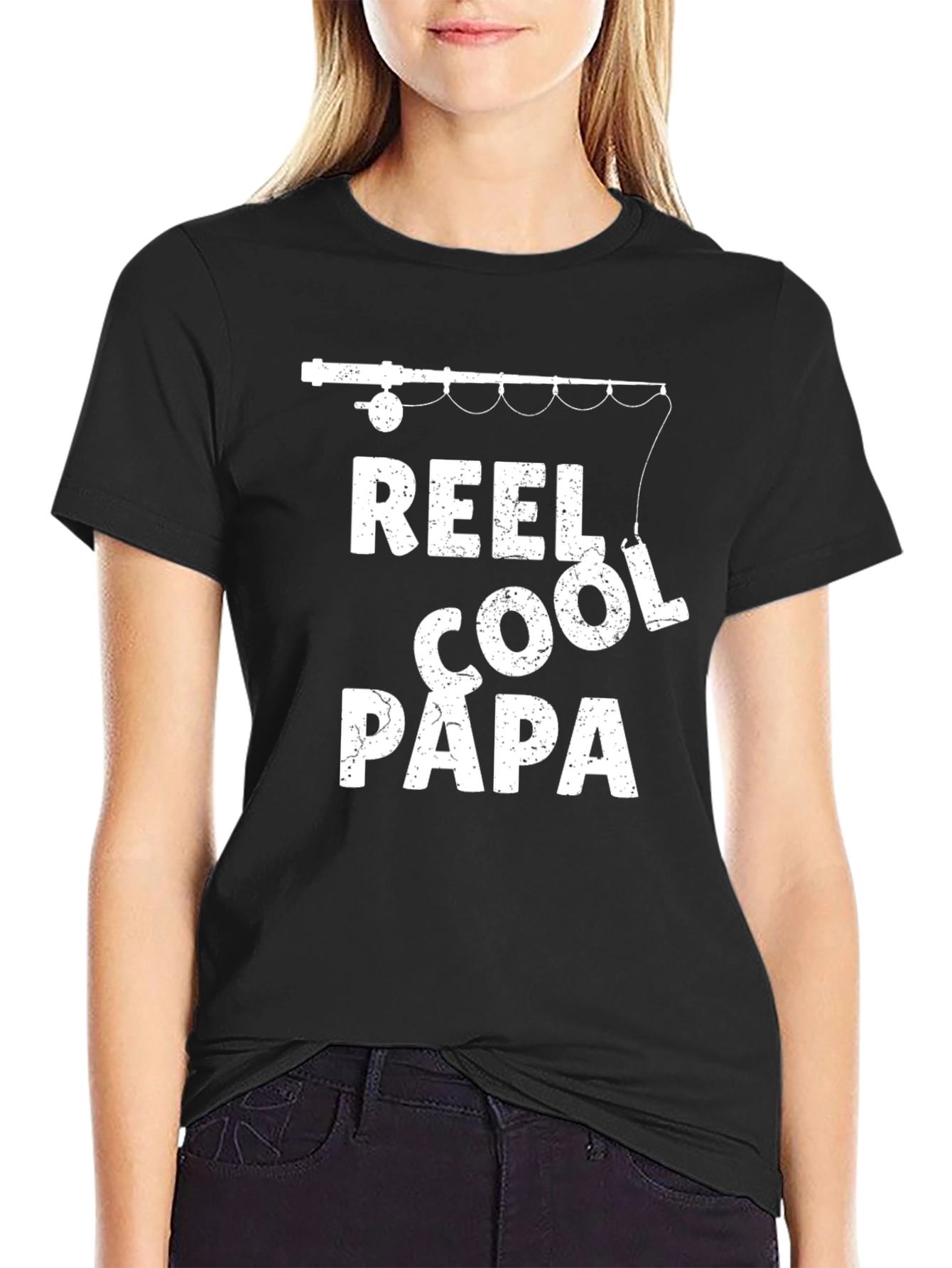 Show off your love for fishing and your role as a 'reel cool papa' with this stylish black t-shirt. This tee features a witty graphic with a fishing pole design and the playful text 'REEL COOL PAPA' in distressed white font. Made from a comfortable-looking fabric, this shirt is perfect for casual wear, fishing trips, or family gatherings. Whether you're casting lines or just hanging out, this t-shirt is a fun way to express your personality and love for the sport. Makes a great gift for Father's Day or any occasion!