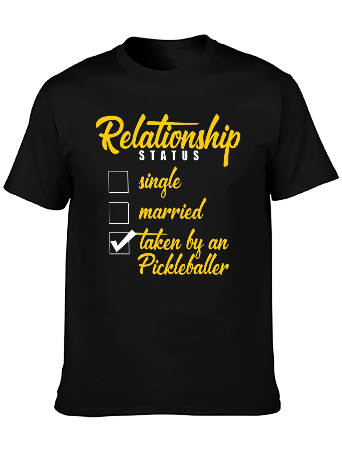 Declare your love for pickleball with this fun novelty t-shirt! Featuring a unique "relationship status" design, this shirt playfully indicates you're happily taken by a pickleball enthusiast. The shirt has a checked box for "taken by an Pickleballer". Made from a soft, comfortable fabric, it's perfect for casual wear, pickleball games, or showing off your passion for the sport. A great conversation starter and a fantastic gift for pickleball-loving individuals or couples. Get yours today and let the world know where your heart lies!