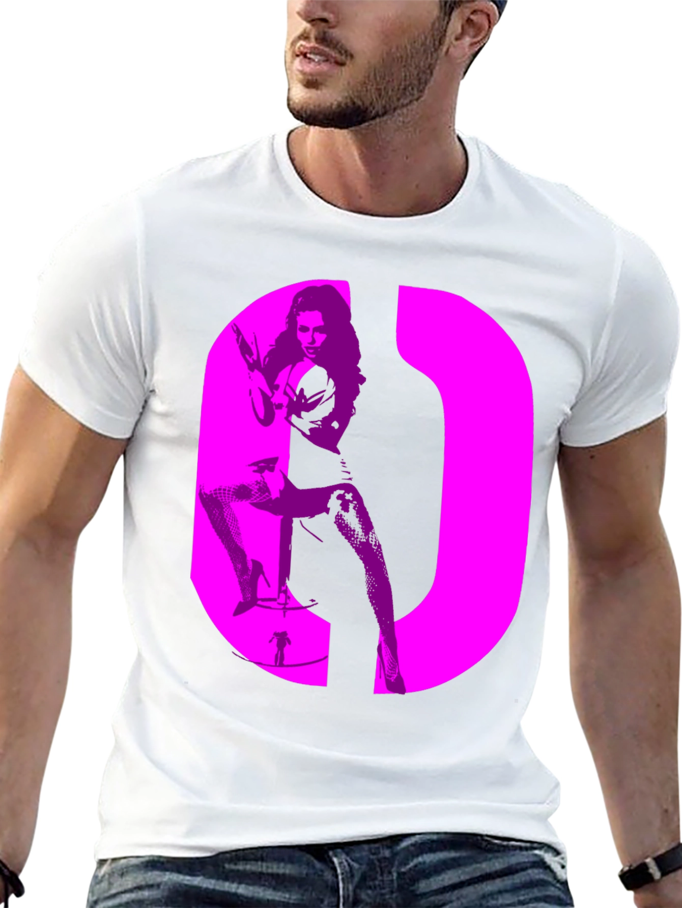 Retro Style Graphic Tee - Bold Pink Silhouette Design