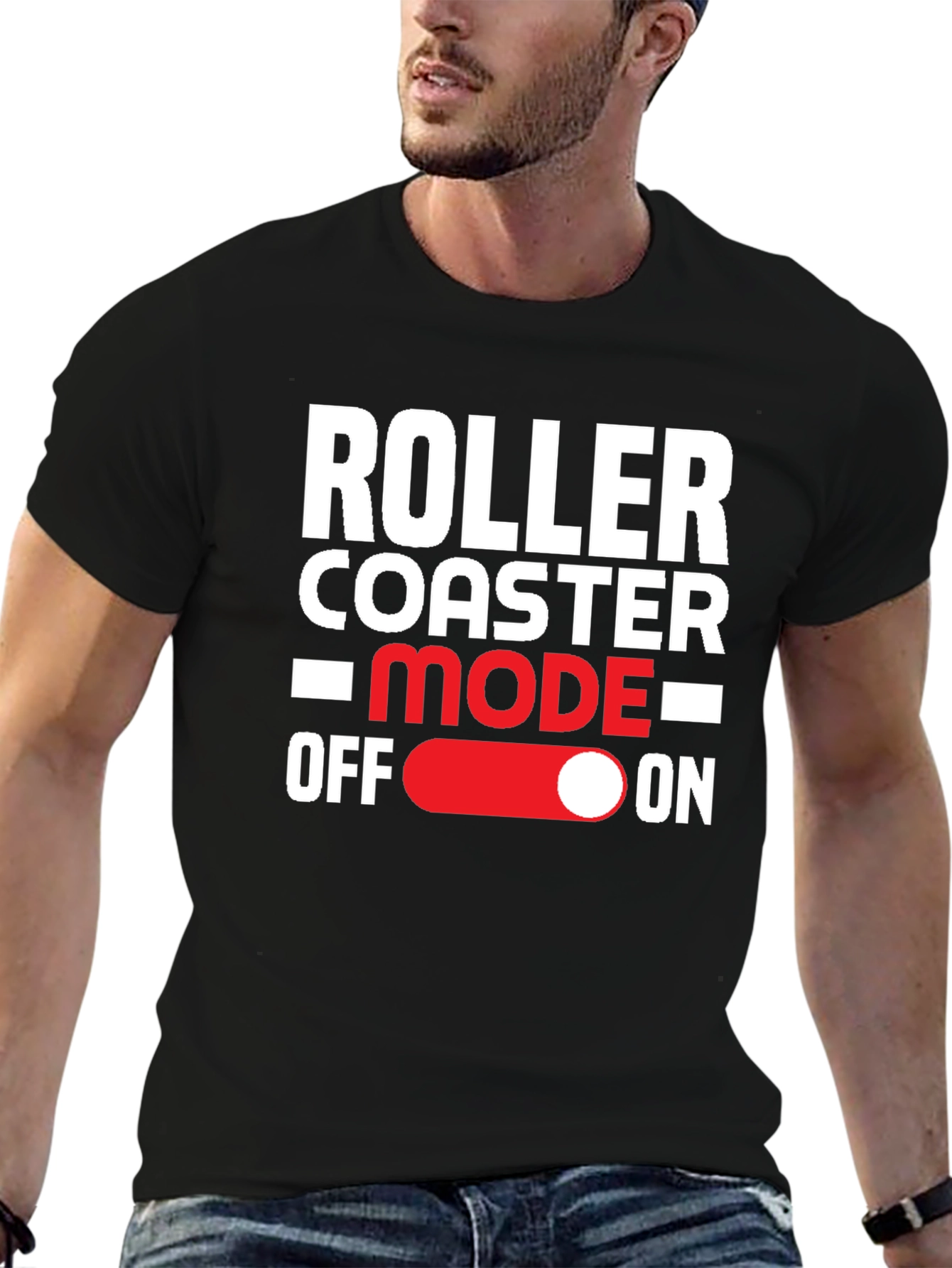 Show off your thrill-seeking side with this unique graphic t-shirt. The black tee features a playful "Roller Coaster Mode: OFF - ON" design in white and red, perfect for amusement park enthusiasts. Made from comfortable, breathable fabric, this shirt is ideal for casual wear, theme park adventures, or a fun conversation starter. The bold print stands out, making it a stylish addition to any wardrobe. Whether you're hitting the roller coasters or just want to express your adventurous spirit, this tee is a must-have!
