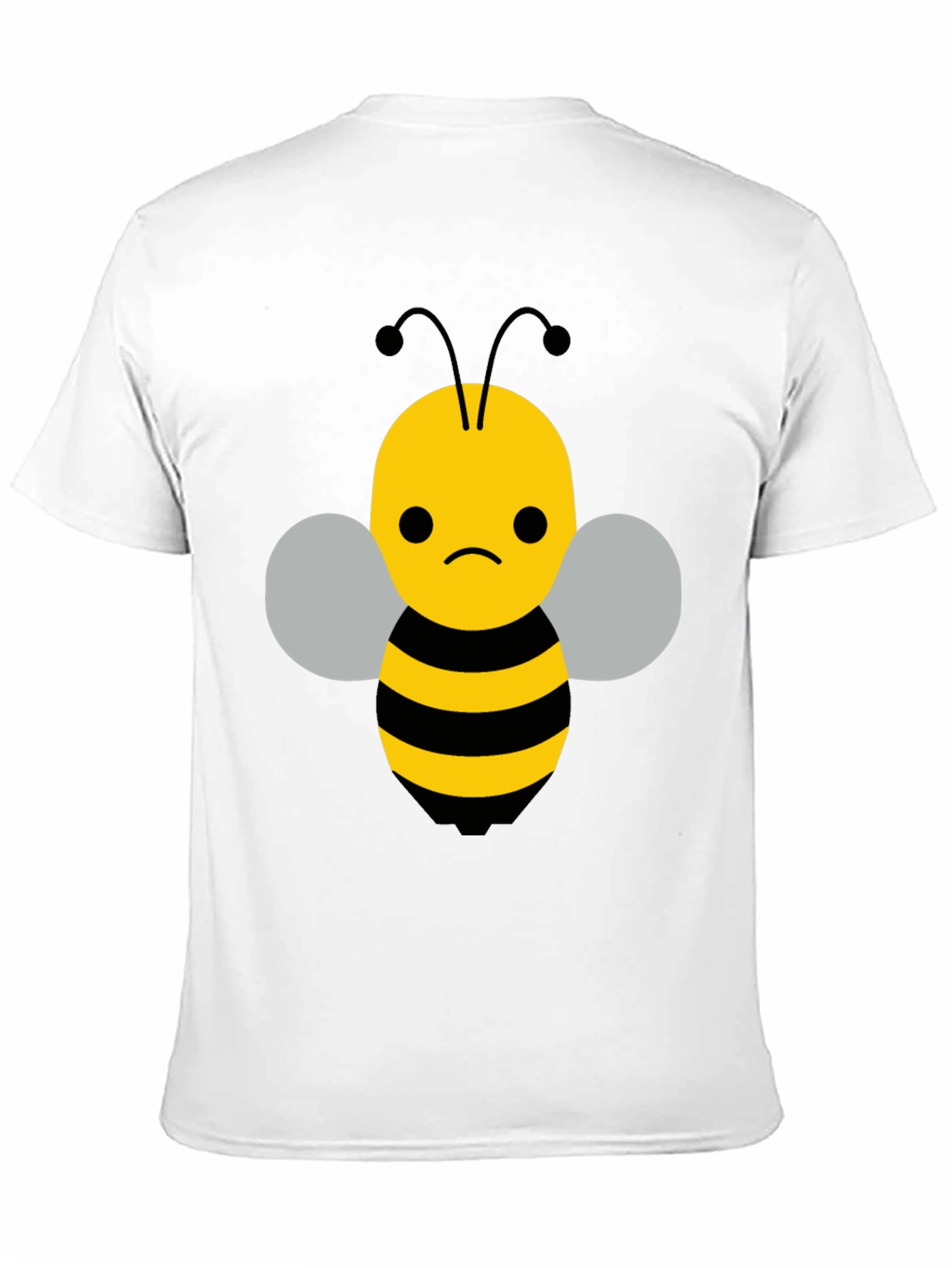 This stylish black t-shirt features a unique graphic of a sad-looking bee. The bee is rendered in bright yellow with black stripes, a downturned mouth, and grey wings, creating a charming yet melancholic design. Made from a comfortable cotton blend, this tee is perfect for everyday wear. The classic crew neck and short sleeves make it a versatile addition to any wardrobe. Show off your unique style with this eye-catching and comfortable t-shirt. Ideal for casual outings, lounging at home, or as a conversation starter. Get yours today and spread the buzz!