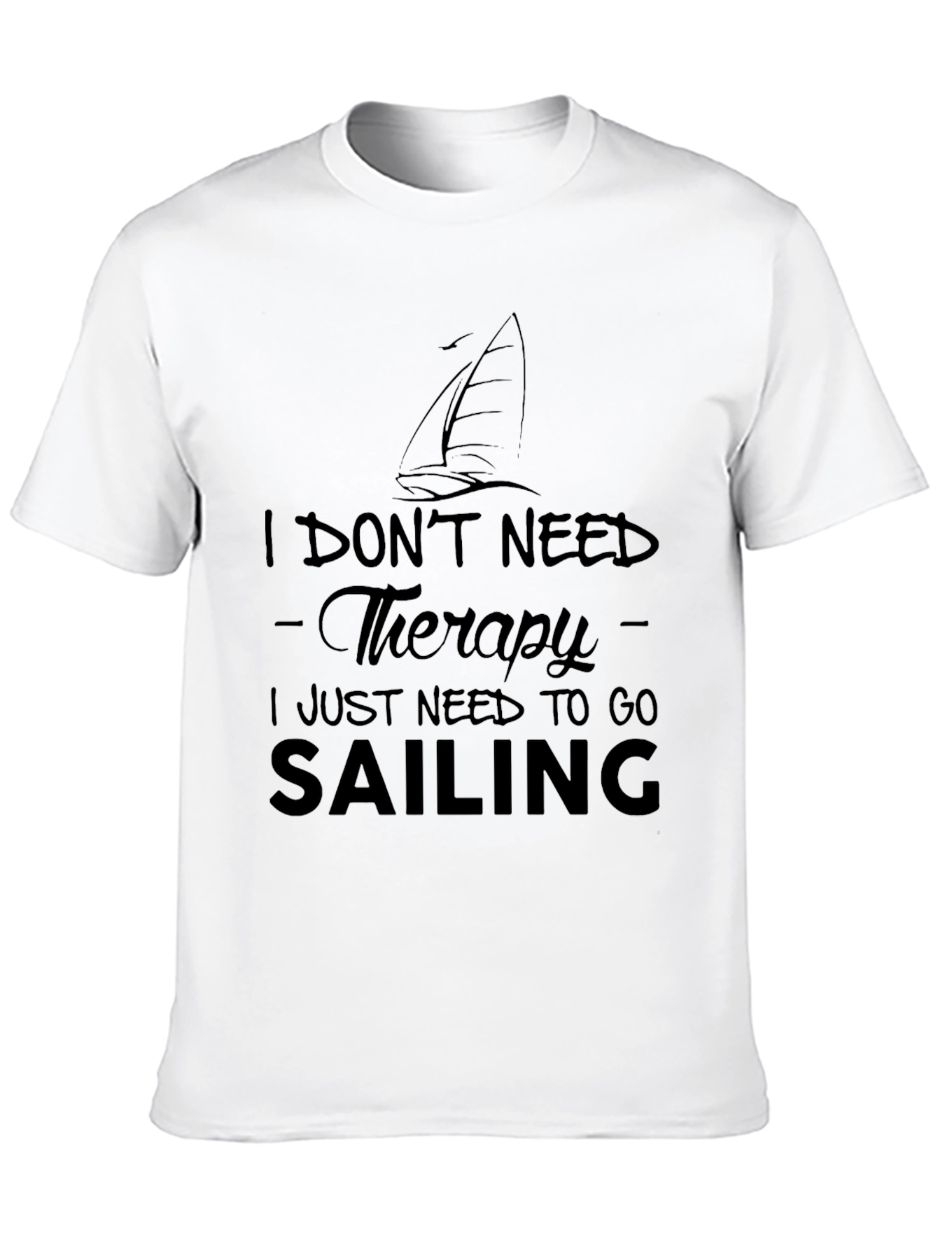 This black graphic tee features a stylish design perfect for sailing enthusiasts. The shirt is made from a comfortable, breathable fabric, ideal for everyday wear. The design includes an image of a sailboat and the text 'I DON'T NEED -Therapy- I JUST NEED TO GO SAILING'. It's a great way to express your passion for sailing or makes an excellent gift for anyone who loves spending time on the water. Perfect for casual outings, boat trips, or simply relaxing at home. Show off your love for sailing with this unique and comfortable tee!