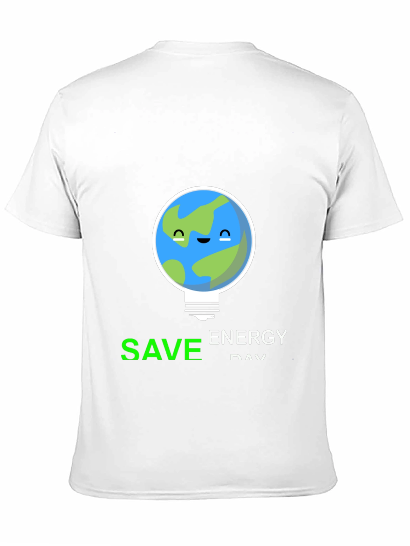 Show your support for energy conservation with this unique graphic tee! This black t-shirt features a creative design of the Earth integrated into a lightbulb, symbolizing energy-saving initiatives. The text "SAVE ENERGY DAY" is printed below the graphic, with 'SAVE' in green for an eco-friendly touch. Made from a comfortable fabric blend, this tee is perfect for everyday wear. It's a great way to express your commitment to sustainability while looking stylish. Wear it to school, environmental events, or casual outings to spark conversations and promote awareness.
