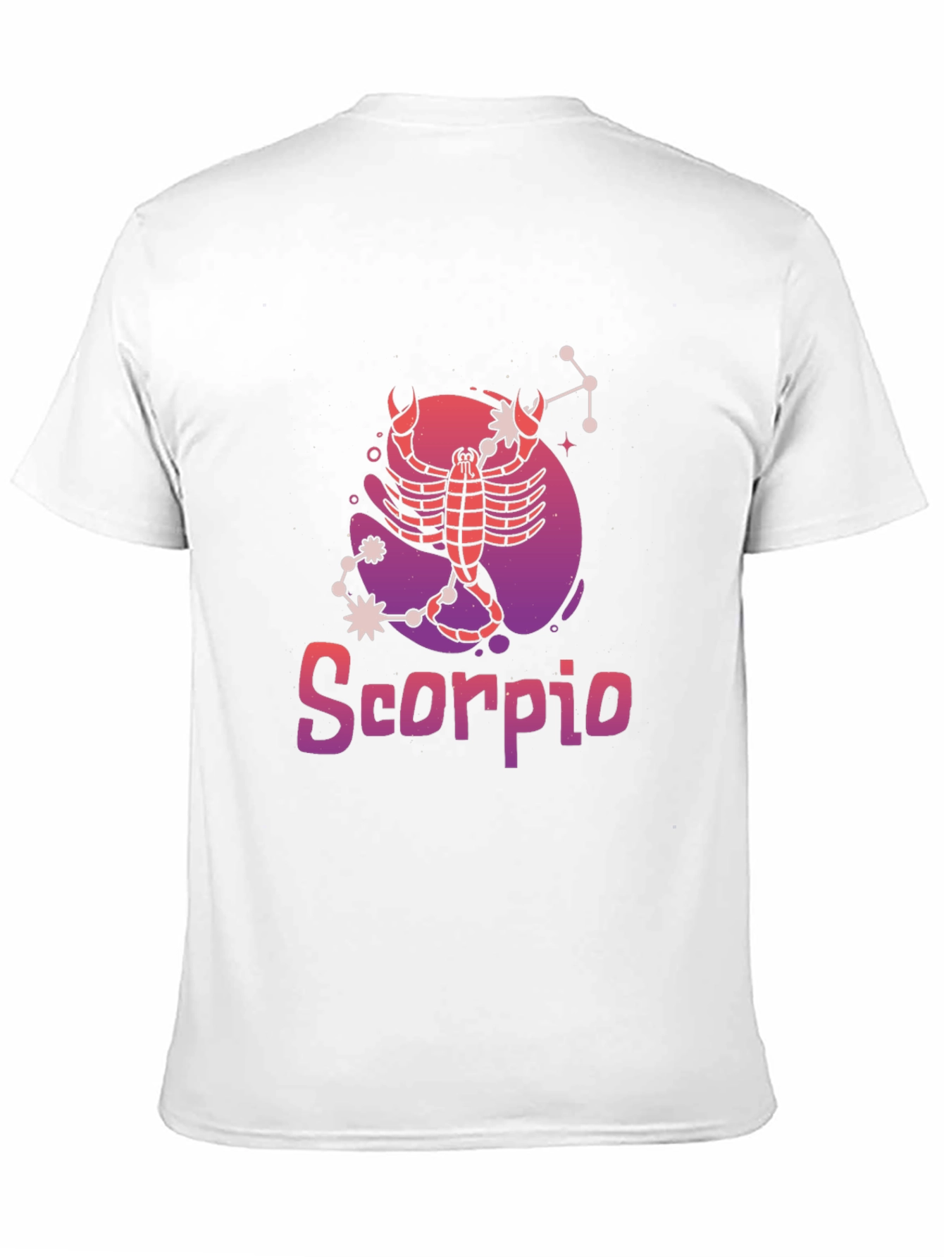 Show off your astrological sign with this stylish black t-shirt. This eye-catching shirt features a vivid graphic of a scorpion and its corresponding constellation, set against a cool pink and purple backdrop. The word "Scorpio" is printed below in a matching gradient font. Made from a soft, comfortable fabric, this t-shirt is perfect for everyday wear and expressing your unique personality. Makes a great birthday gift for Scorpios! Pair with jeans or shorts for a casual, on-trend look.