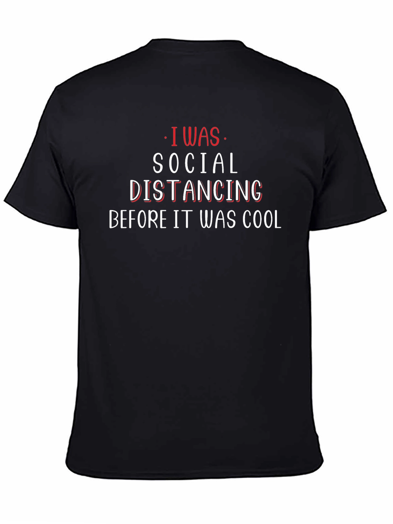 This black graphic tee is the perfect blend of humor and comfort. Featuring the witty saying "I WAS SOCIAL DISTANCING BEFORE IT WAS COOL," this shirt is sure to turn heads and spark conversations. The text is displayed in a mix of red and white lettering, adding a pop of color to the classic black background. Made from a soft-looking fabric, this tee seems ideal for casual wear, whether you're lounging at home or out and about. Show off your unique sense of humor with this stylish and relatable T-shirt!
