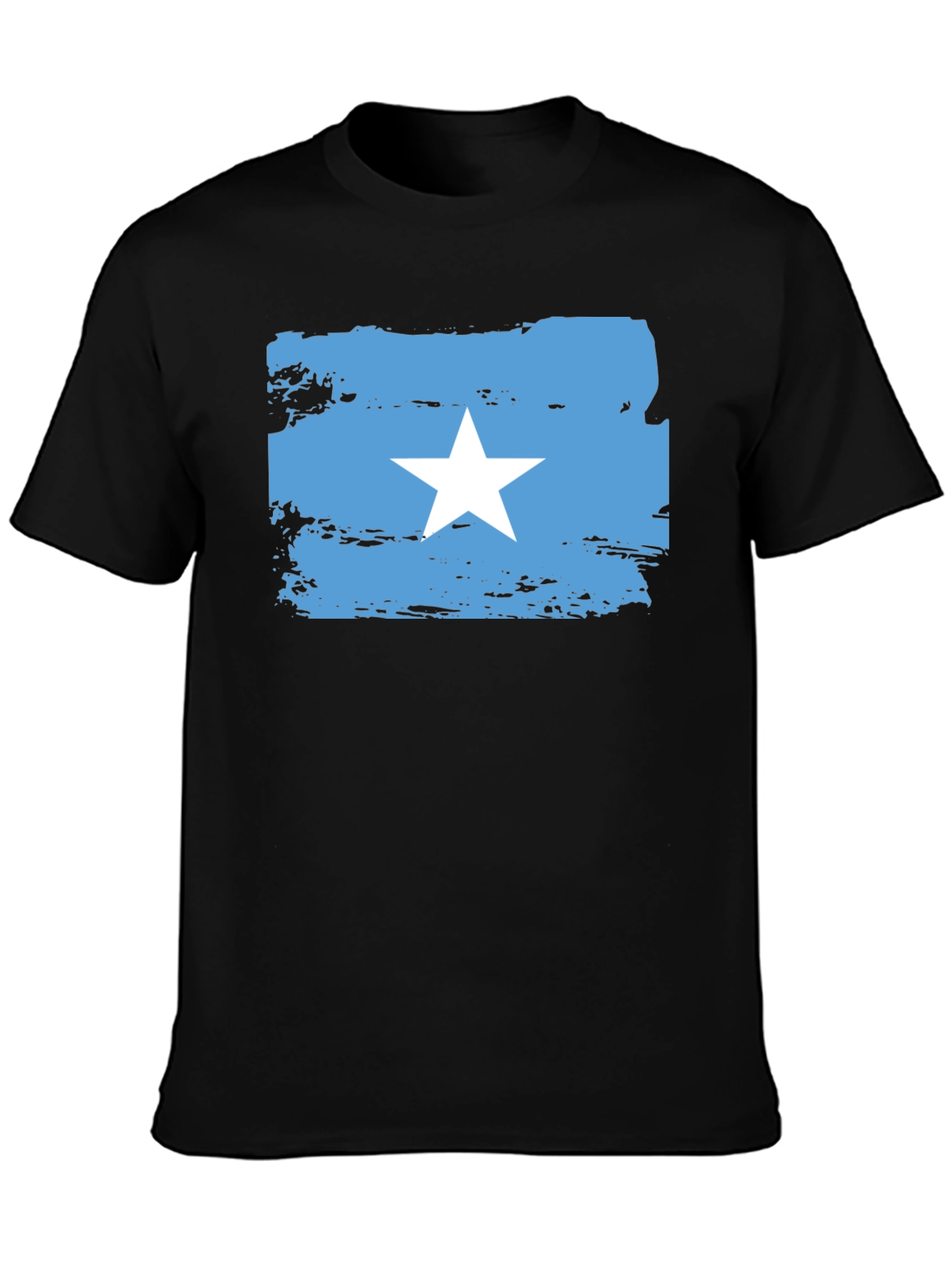 Show your Somali pride with this unique t-shirt! Featuring a distressed-style Somalia flag graphic, this tee makes a bold statement. The design showcases the iconic light blue background and white star, instantly recognizable. Made from a comfortable black fabric, this shirt is perfect for everyday wear. Whether you're celebrating Somali culture, showing your heritage, or just want a stylish tee, this shirt is a great choice. Ideal for casual outings, cultural events, or as a thoughtful gift. Get yours today and wear your Somali pride!