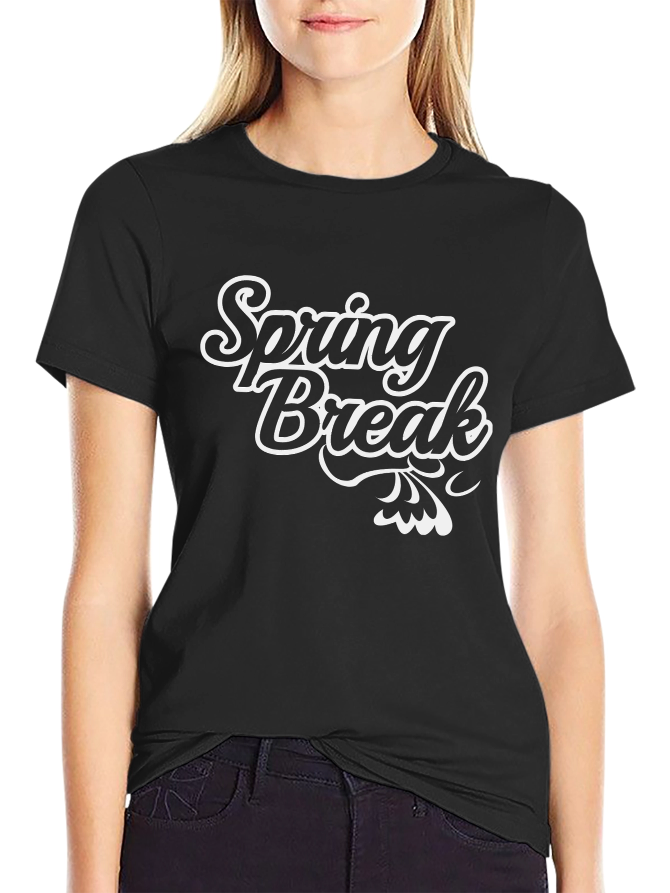 Get ready for vacation vibes with this stylish black T-shirt! Featuring a bold "Spring Break" graphic in white, it's perfect for casual wear. The soft, comfortable cotton material makes it ideal for all-day wear, whether you're lounging at home or hitting the beach. The classic fit is flattering and versatile, making it easy to pair with jeans, shorts, or skirts. Show off your vacation spirit with this must-have tee!