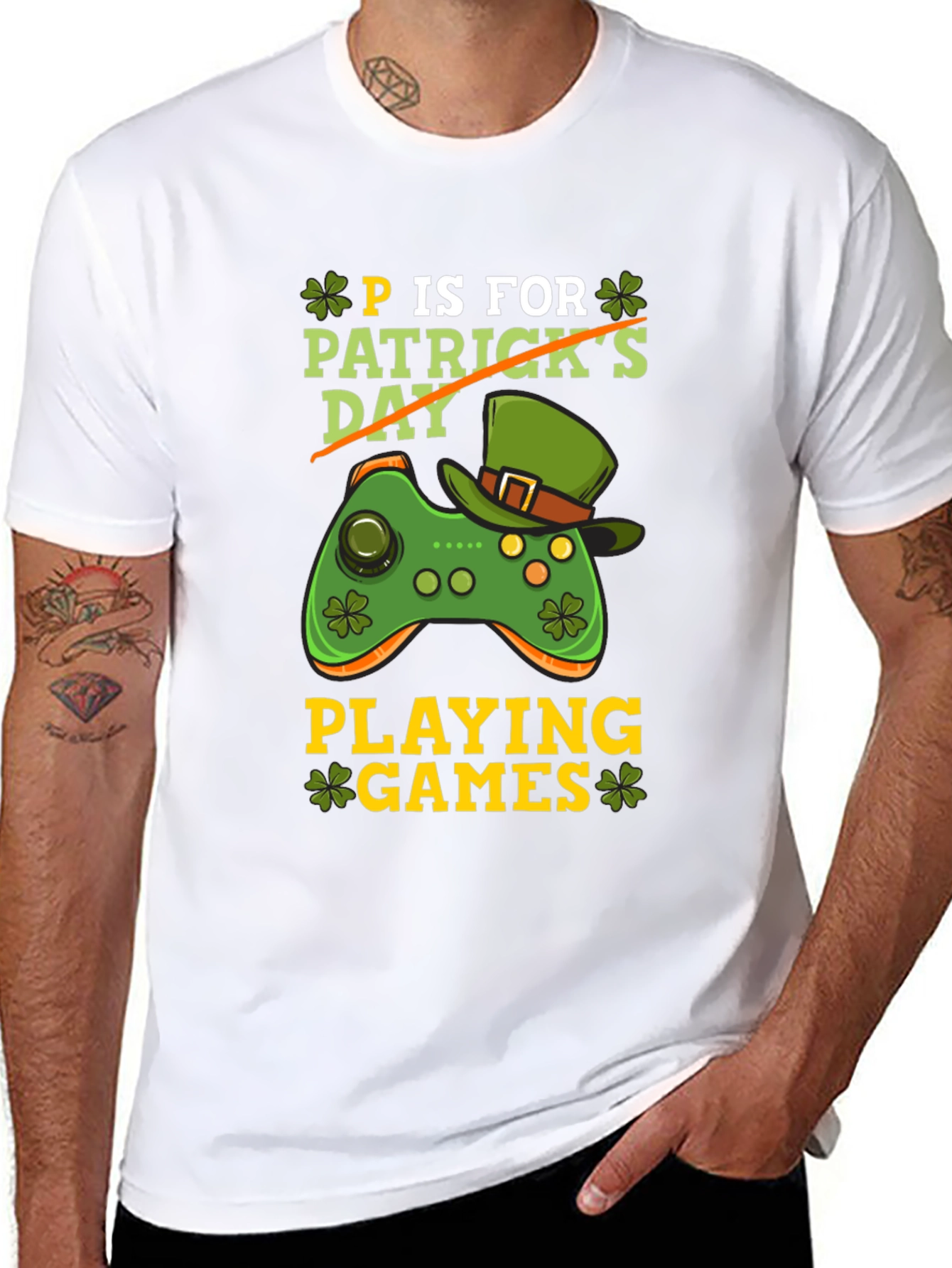 Get ready to level up your St. Patrick's Day style with this unique black t-shirt! Featuring a fun graphic, this tee puts a playful twist on the holiday. The design showcases a green video game controller, playfully adorned with a classic leprechaun hat, making it the perfect shirt for gamers and St. Patty's Day enthusiasts alike. The humorous text, complete with shamrock accents, adds a touch of luck and whimsy. Made from a comfortable, breathable fabric, this tee is ideal for casual wear, gaming sessions, or festive St. Patrick's Day celebrations. Show off your love for gaming and the luck of the Irish with this eye-catching t-shirt!