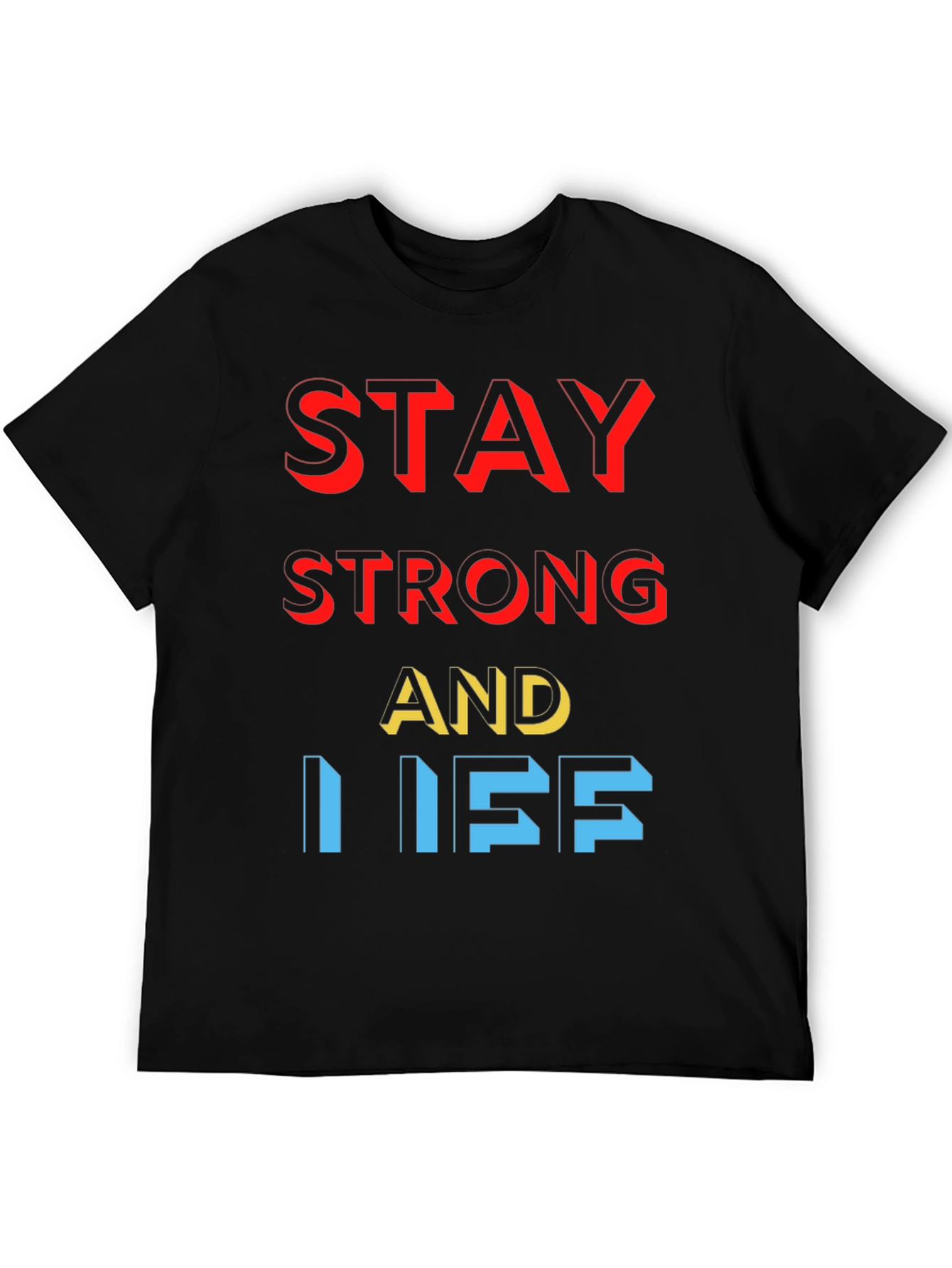 Showcase your resilience with this bold, black graphic tee! Featuring the uplifting message "Stay Strong AND I SEE," this shirt combines comfort and style. The words pop with vibrant red, yellow and blue accents, offering a visually striking look. Crafted from soft, breathable fabric, this tee is perfect for everyday wear, workouts, or casual outings. Make a statement and inspire others with your positive mindset. Pair it with jeans or shorts for an effortlessly cool and motivational ensemble. Get yours today and wear your strength!