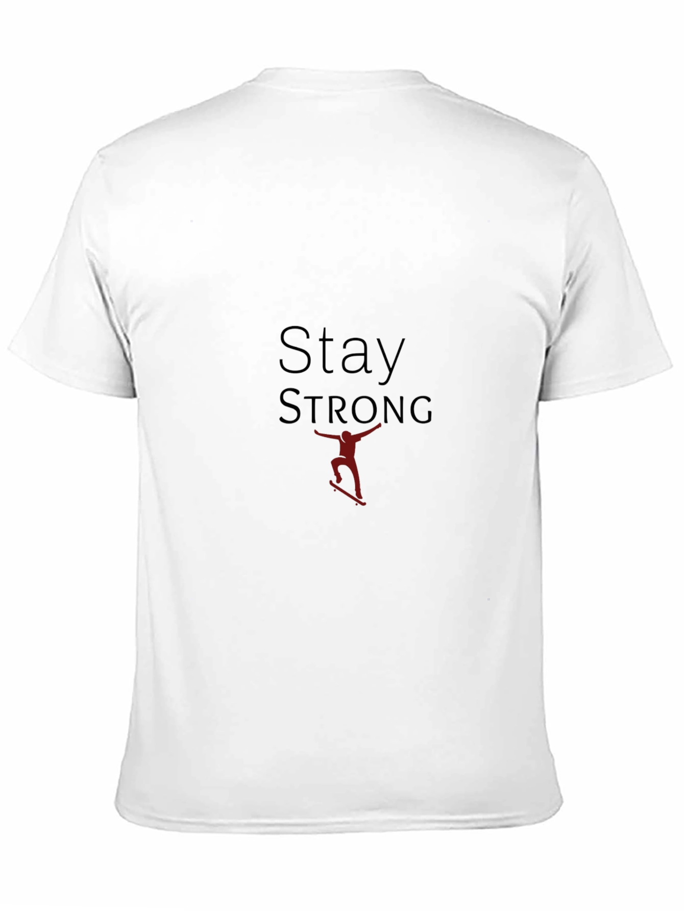 This black tee features the empowering message "Stay Strong" above a stylized skater silhouette in striking red. Crafted from comfortable cotton, it boasts a classic fit suitable for everyday wear. The design provides a touch of sporty edge while promoting a positive mindset. Perfect for casual outings, workouts, or just lounging around, this t-shirt makes a statement. Show off your resilient attitude with this fashionable and inspiring graphic tee. Its simple yet eye-catching design ensures it'll become a staple in your wardrobe. Get yours today!