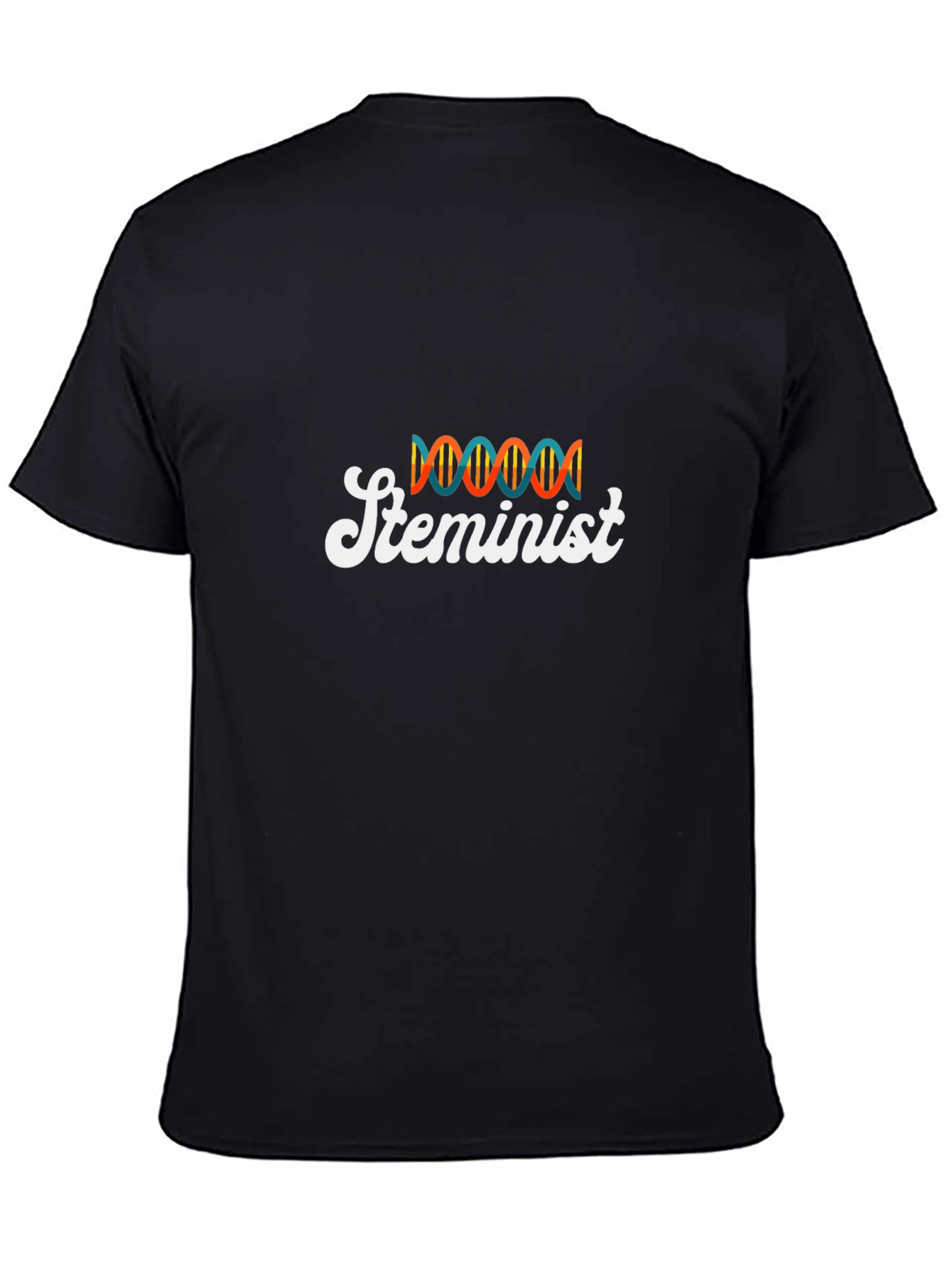 Show off your love for STEM and feminism with this unique graphic t-shirt. The shirt features the word "Steminist" in a stylish, eye-catching font, overlaid by a colorful DNA design. Made from a soft, comfortable material, this tee is perfect for everyday wear. Whether you're headed to class, a science convention, or simply want to express your values, this shirt is a great choice. Wear it with pride and inspire conversations about the importance of diversity in STEM fields. Makes a great gift for students, scientists, educators, and feminists!