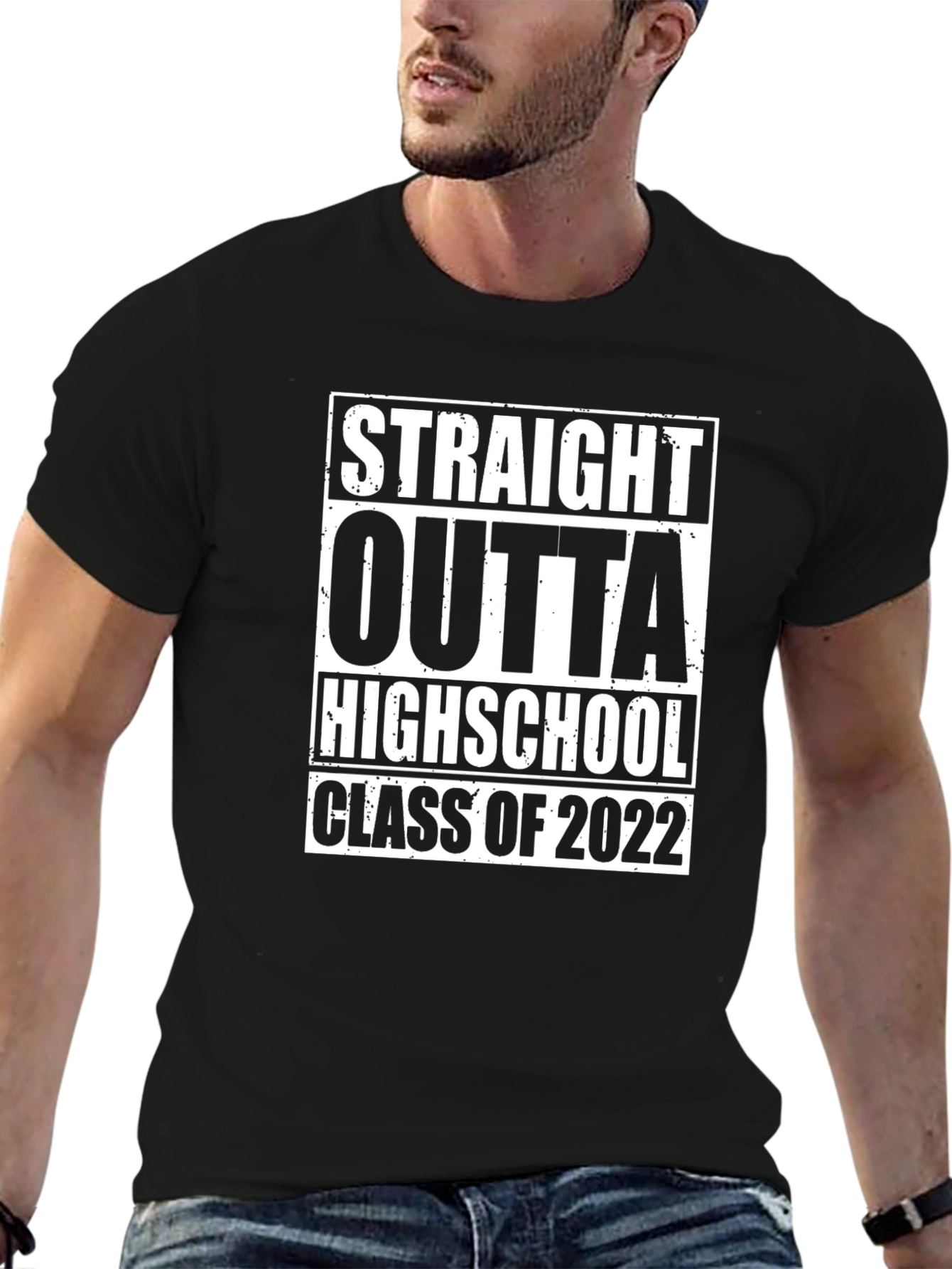 Celebrate graduation in style with this classic black t-shirt! Featuring a bold white graphic print that reads "STRAIGHT OUTTA HIGHSCHOOL CLASS OF 2022," this tee is the perfect way to commemorate a significant milestone. Made from a comfortable and durable fabric, this shirt is ideal for graduation parties, casual outings, or everyday wear. The eye-catching design is sure to make a statement and spark conversations. Show off your hard-earned achievement with this must-have graduation keepsake. A great gift for any graduating student!