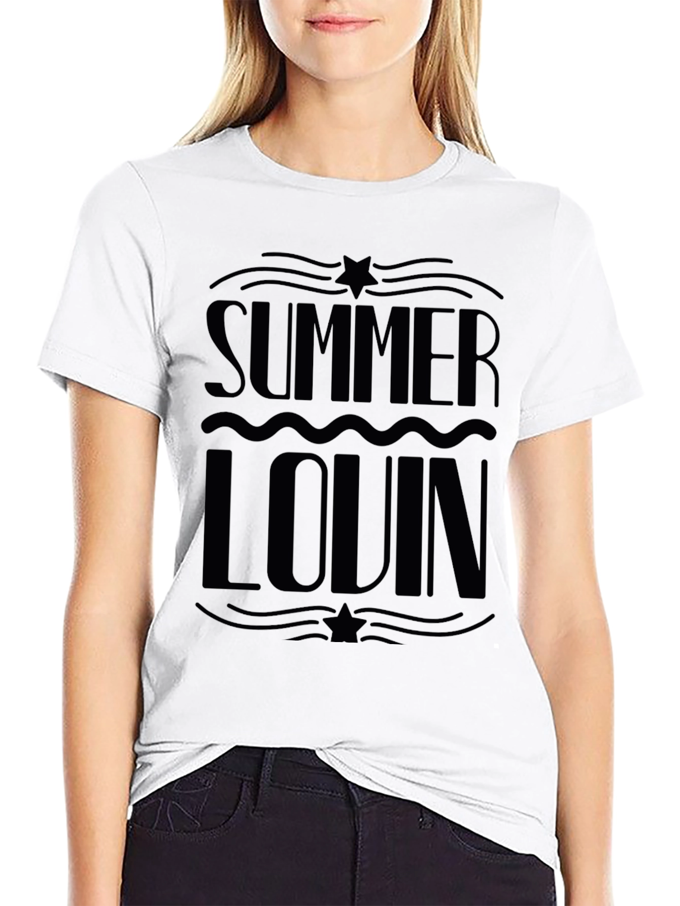 Embrace the warmth of summer with this stylish Summer Lovin' Graphic T-shirt. Made from a comfortable, breathable fabric, this tee features a bold, eye-catching design. Perfect for casual outings, beach days, or simply lounging around, this tee is a must-have addition to your warm-weather wardrobe. The classic black color makes it easy to pair with any bottoms, while the relaxed fit ensures all-day comfort. Show off your summer vibe with this unique and trendy graphic tee.