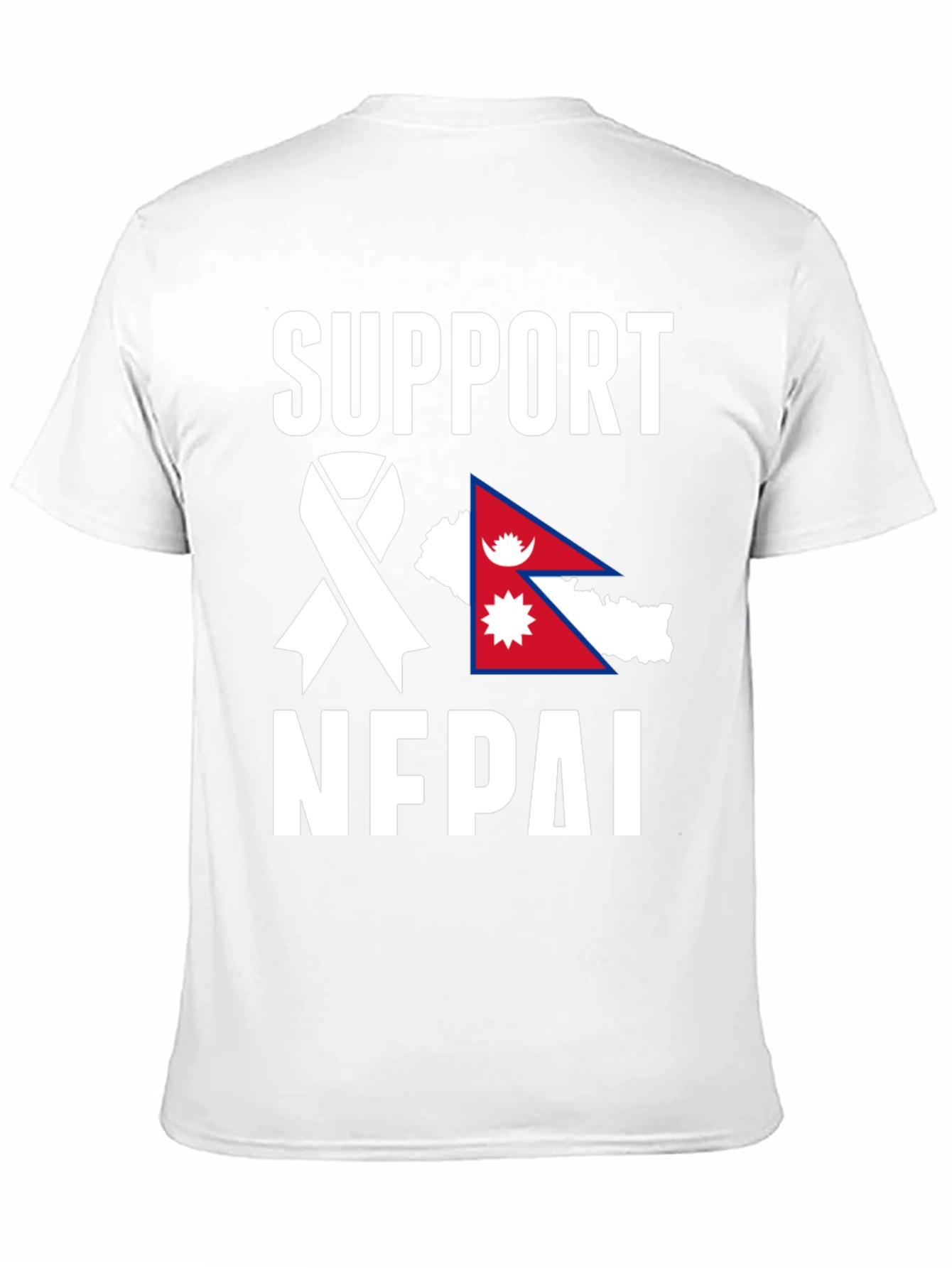 Show your support with this black t-shirt featuring a white ribbon and Nepal flag design. Made from comfortable material, it's perfect for everyday wear and expressing solidarity. The design incorporates the country's outline alongside the flag. Wear it to Nepali cultural events, support causes, or simply show your love for Nepal. A meaningful way to spread awareness and connect with the Nepali community.