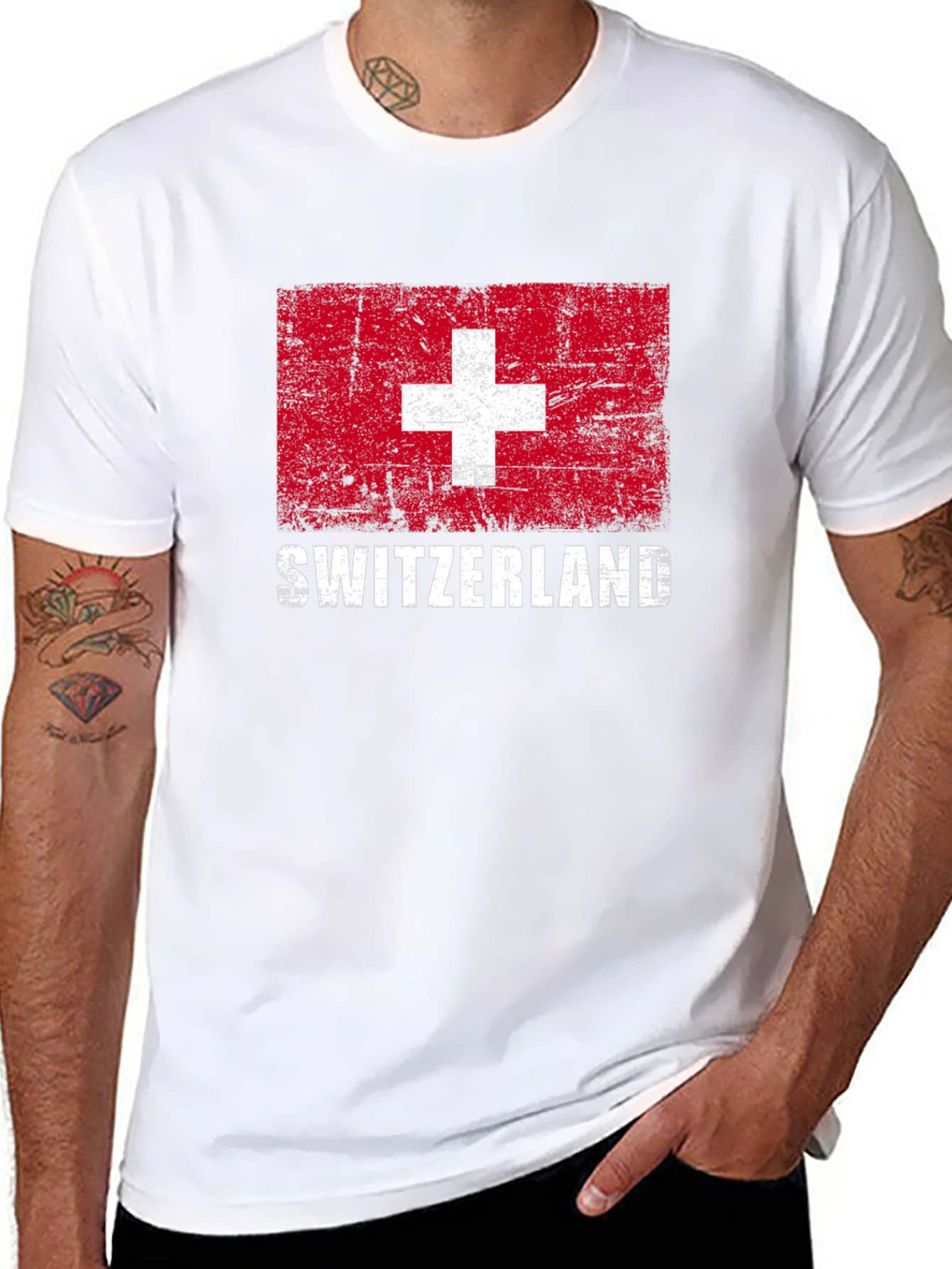Switzerland Flag Graphic T-Shirt - Distressed Design