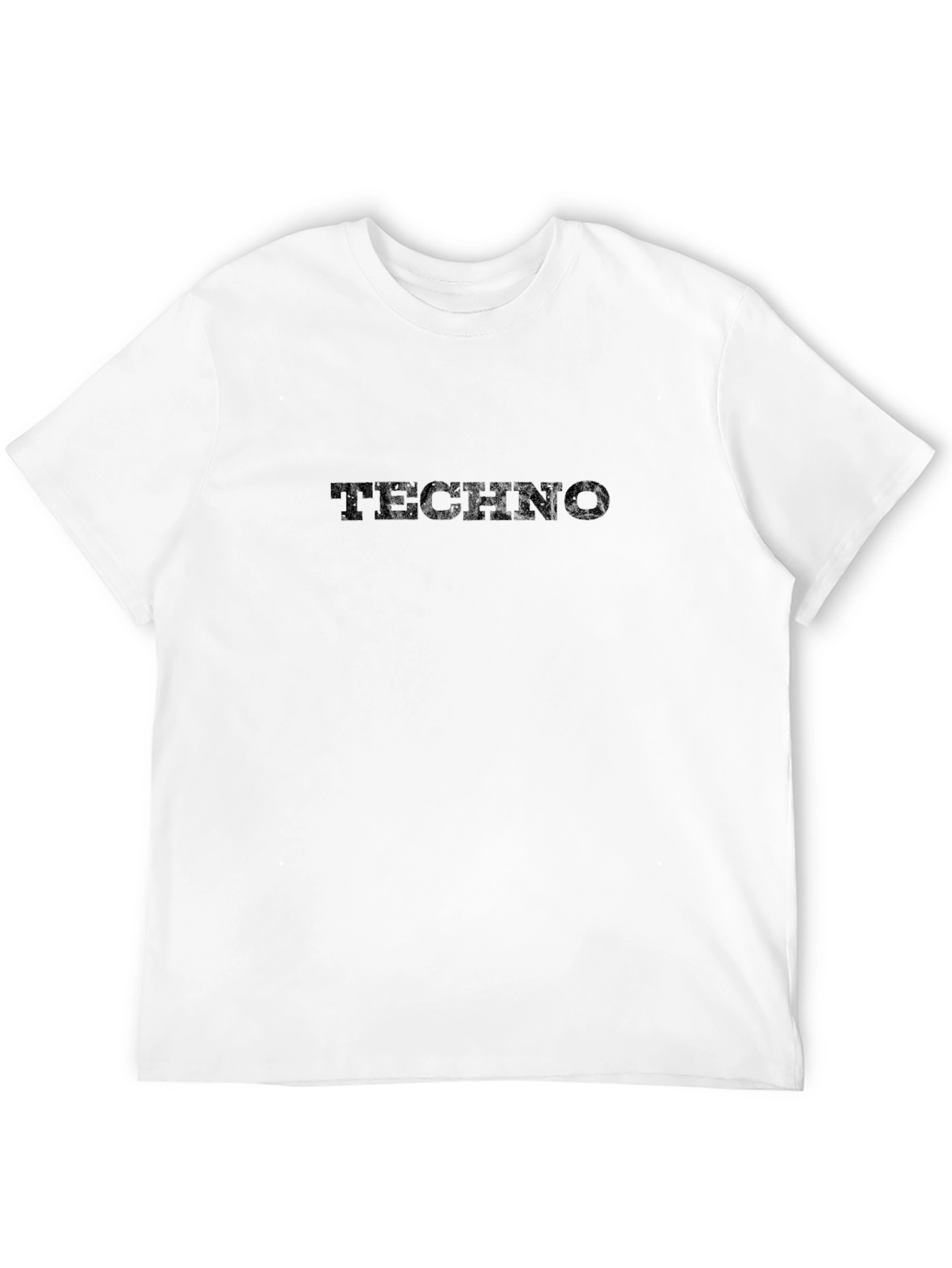 Embrace the underground music scene with this stylish black 'Techno' t-shirt. Made from a soft, comfortable fabric, this classic fit tee is perfect for everyday wear or a night out at your favorite club. The bold 'Techno' print across the chest makes a statement without being too loud, showcasing your love for electronic music. It's a casual staple that pairs effortlessly with jeans, shorts, or joggers. Get ready to move to the beat in this cool, understated tee. Perfect for music festivals, raves, or simply chilling with friends.