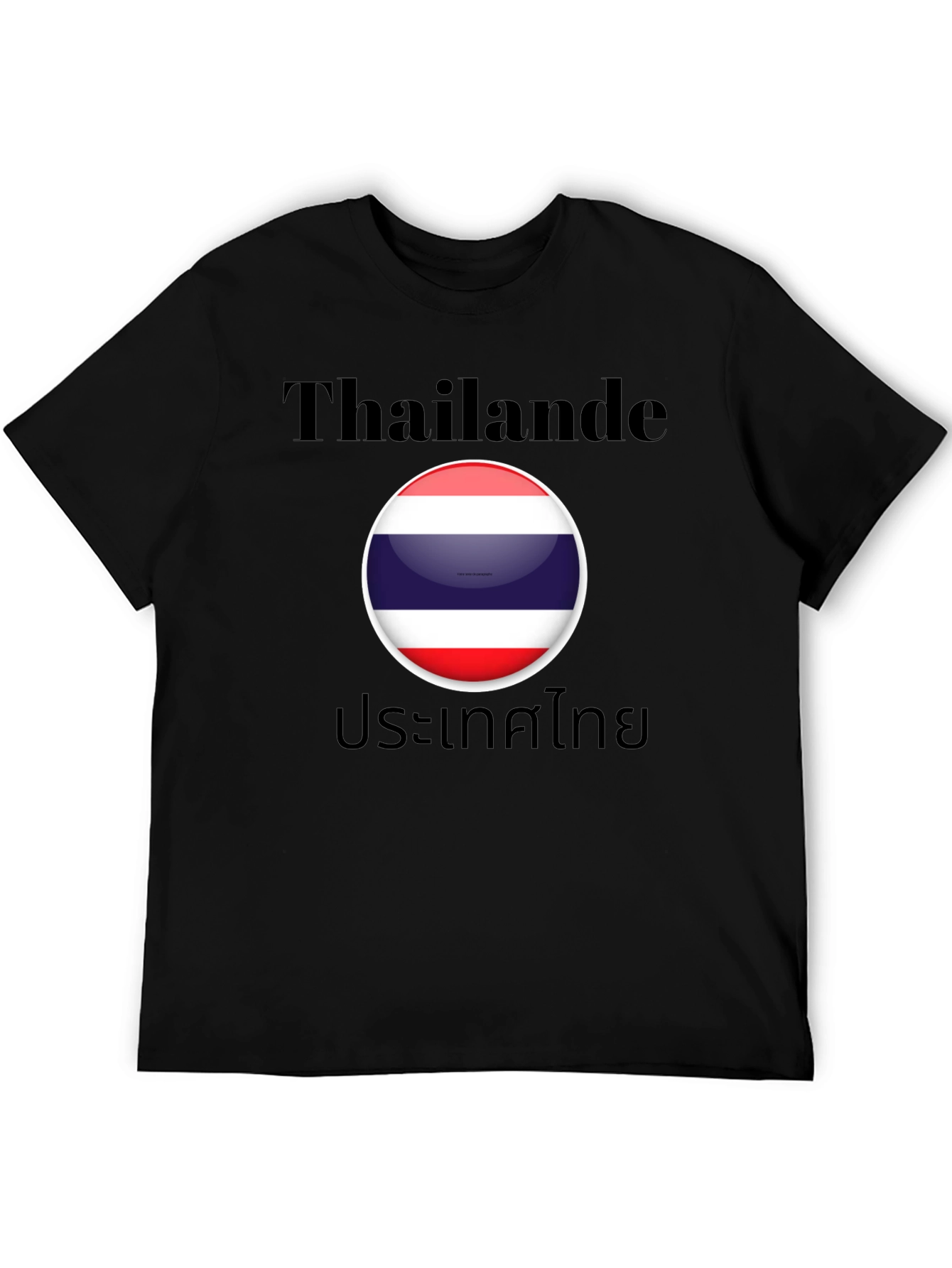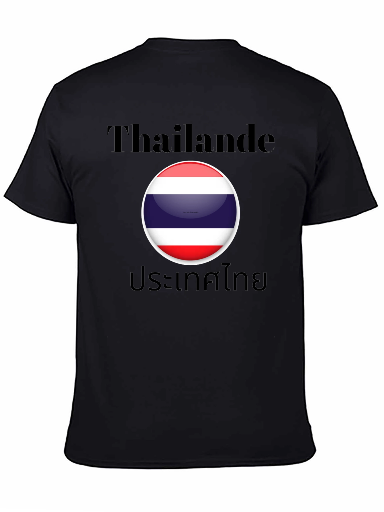 Show your love for Thailand with this stylish black T-shirt! This tee features a vibrant Thai flag graphic in a circular design, complemented by "Thailande" text above and the Thai spelling of Thailand below. Made from comfortable, breathable cotton, this shirt is perfect for everyday wear, travel, or cultural events. The classic fit and dark color make it versatile for pairing with jeans, shorts, or casual pants. A unique and eye-catching way to represent your Thai pride or interests. Get yours today and showcase your global style!